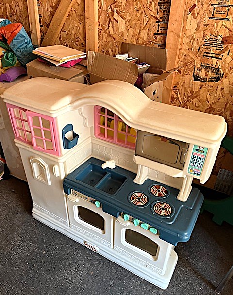 Contents of two 19' x 12' garages being sold by the garage's owner. Items are being liquidated from a closed daycare. Contents include: Joni cabinets, foldable cribs with posture boards; wooden rolling storage cart; Little Tikes tricycles; Bye Bye Buggy six-seater stroller; Joni Craft wooden sensory play kitchen; Graco Ingenuity high chairs; round exersaucers; wooden chairs; Graco baby rockers; Hewlett Packard desktop screen; sleeping cots; eight-seat kidney toddler feeding table; Little Tikes plastic kitchen; fine motor skills activity center; outside water interactive tables; three-sided easel- fine motor skill toys; soccer balls; bicycle helmets; Cosco Simple Fold high chairs; plus much more. The functionality of electric/electronic items are unknown. Authenticity is not checked nor guaranteed on any & all items. Items are located in Manchester, CT.