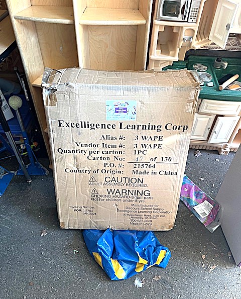 Items include fridge; outdoor playscape (apart); boxes with office items, kitchen items, and toys; Sterilite cabinet 35" x 25" with cots. Also, boxes with daycare items; sensory Little Tikes plastic kitchen 44" x 42"; stroller; Sterilite cabinet. The cabinet contains CD player and play clothes. Also, twelve cots 50" x 23"; boxes of play toys and books; six cots 50" x 23"; outdoor playscape (apart); thirteen chairs; new three-sided easel; assorted plastic chairs; table – legs are off, 60" x 30"; table – legs are off, 72" x 30"; eight-seat kidney toddler feeding table – legs are off, 77.5" x 44". Plastic seat inserts not shown; natural wood cabinet with toys and other items 48" x 19"; three-seat toddler feeding table – legs are off, 48" x 30"; octagonal table 48" with legs underneath; high chair with removable tray; new in box, Colorations three-way acrylic panel easel 23" x 39" x 47"; natural wood cabinet for books 48" x 22.5"; storage container with bag of soccer balls and holiday items; baby changing table 32.5" x 21" with plastic storage container containing first aid items and other supplies; fine motor skills activity center; pop-up gazebo 10 x 10 feet; three outdoor water interactive tables; Little Tikes interactive kitchen 44" x 13"; Hewlett Packard desktop screen; bicycle helmets; plastic table 30.5" with wooden playhouse on top; two new Cosco Simple Fold high chairs; playhouse 47.5" x 41", by Guidecraft; new three-sided easel; assorted fine motor skill toys; slide; chairs; cabinet 20" x 15"; multiple Joni Craft cabinets in multiple sizes. The functionality of electric/electronic items are unknown. Authenticity is not checked nor guaranteed on any & all items. Pickup is by appointment only to gain initial access & clean out must be completed by Sunday, March 22 at 5PM. PICKUP NOTE: The high bidder must clean/take all & leave nothing in the garages or on the property by Sunday, March 22 at 8PM. The garages must be broom swept clean. Any dumpsters on the property are for use by the tenants only, not the public. Anything left in the garages after Sunday, March 8 at 5PM will be deemed abandoned & all cleanup costs will be the responsibility of the buyer with a minimum disposal fee of $300. Due to security reasons the pickup location will only be given to the winning bidders. There is no physical inspection available for this auction. Items are located in Manchester, CT.