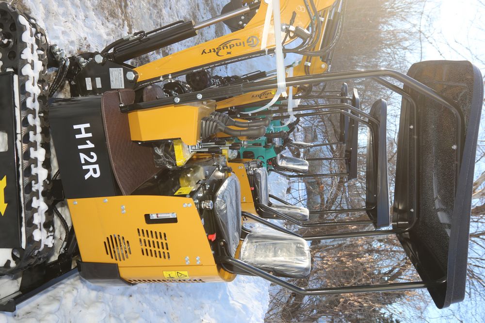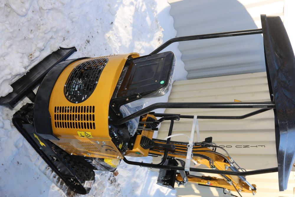 New 2026 CFG Industrial gas powered mini Excavator model H12R with 420cc gasoline engine with EPA, bucket, 4' long tracks, 36.5" wide base, 6" wide tracks, canopy, hydraulic boom & bucket controls, dozer blade. Hours reading less than 1 hour.