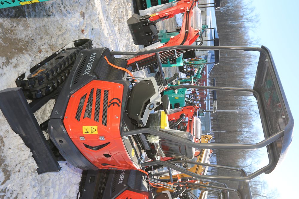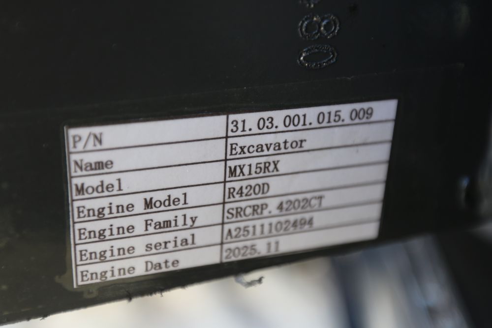 New 2026 CFG Industrial MX15RX Mini Excavator with a 420CC gas engine, dozer blade, bucket, pilot control’s, and digital gauges. Hours reading less than 1 hour.