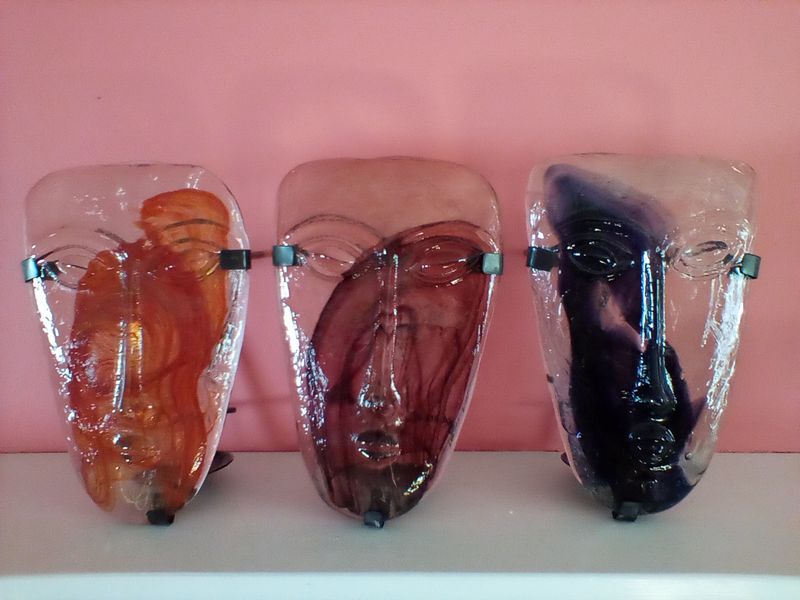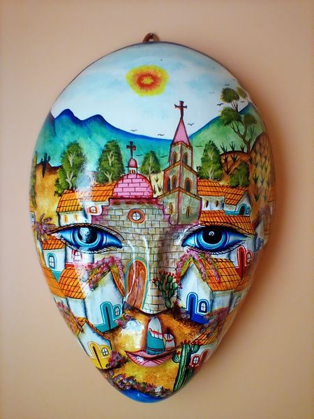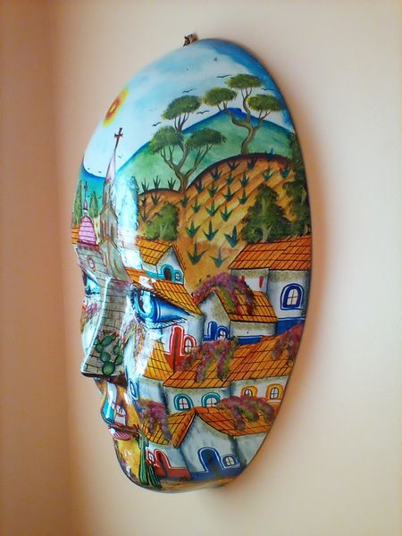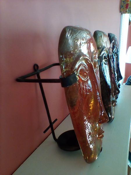 Authentic Mexican mask Décor. F.Amar.Mexico wall mask, 18"; set/3 Jaramillo Brothers art glass from Mexico. See photos for details.
