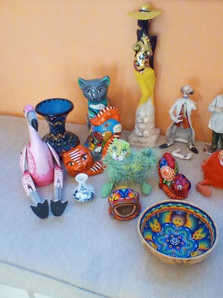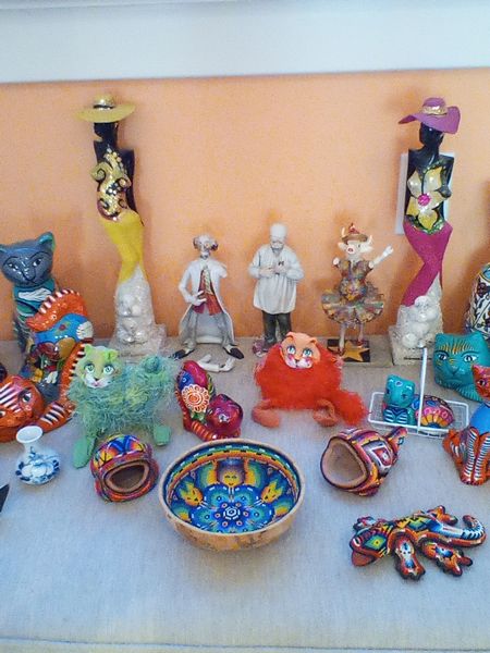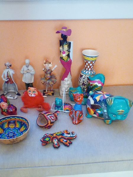 Whimsical Colorful Décor. Décor from various travels. Tallest pc, 13'H. See photos for details.