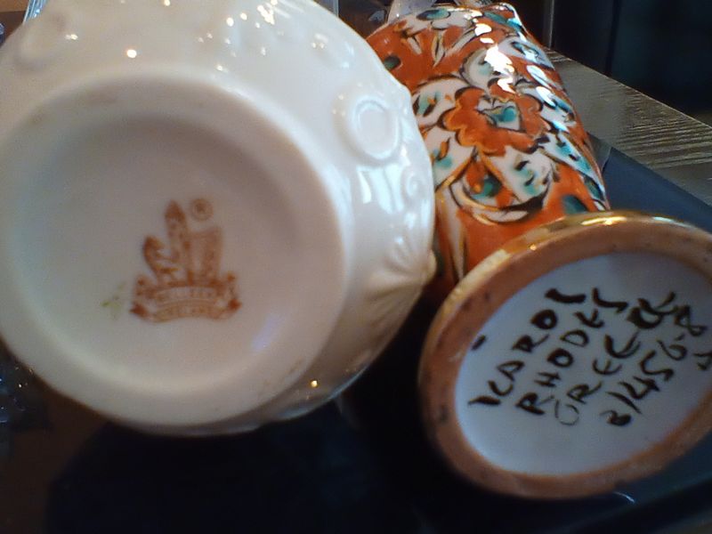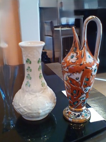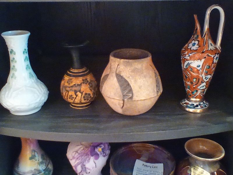 Pottery Vases and Vessels. Items from various travels. Approx 20 pcs. Two figures in center, back have detached arms (clean break). See photos for details and maker's marks.