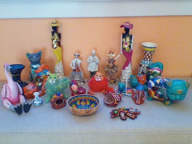 Whimsical Colorful Décor. Décor from various travels. Tallest pc, 13'H. See photos for details.