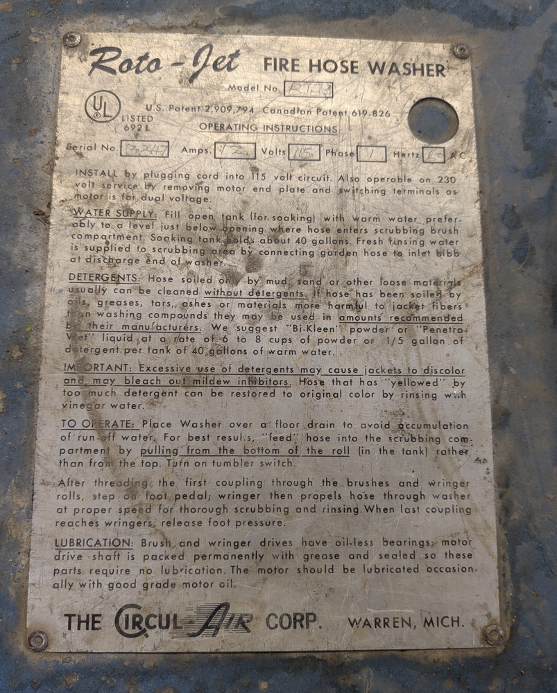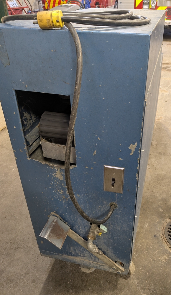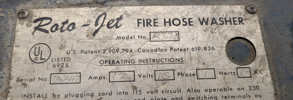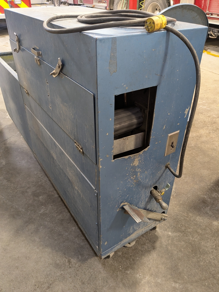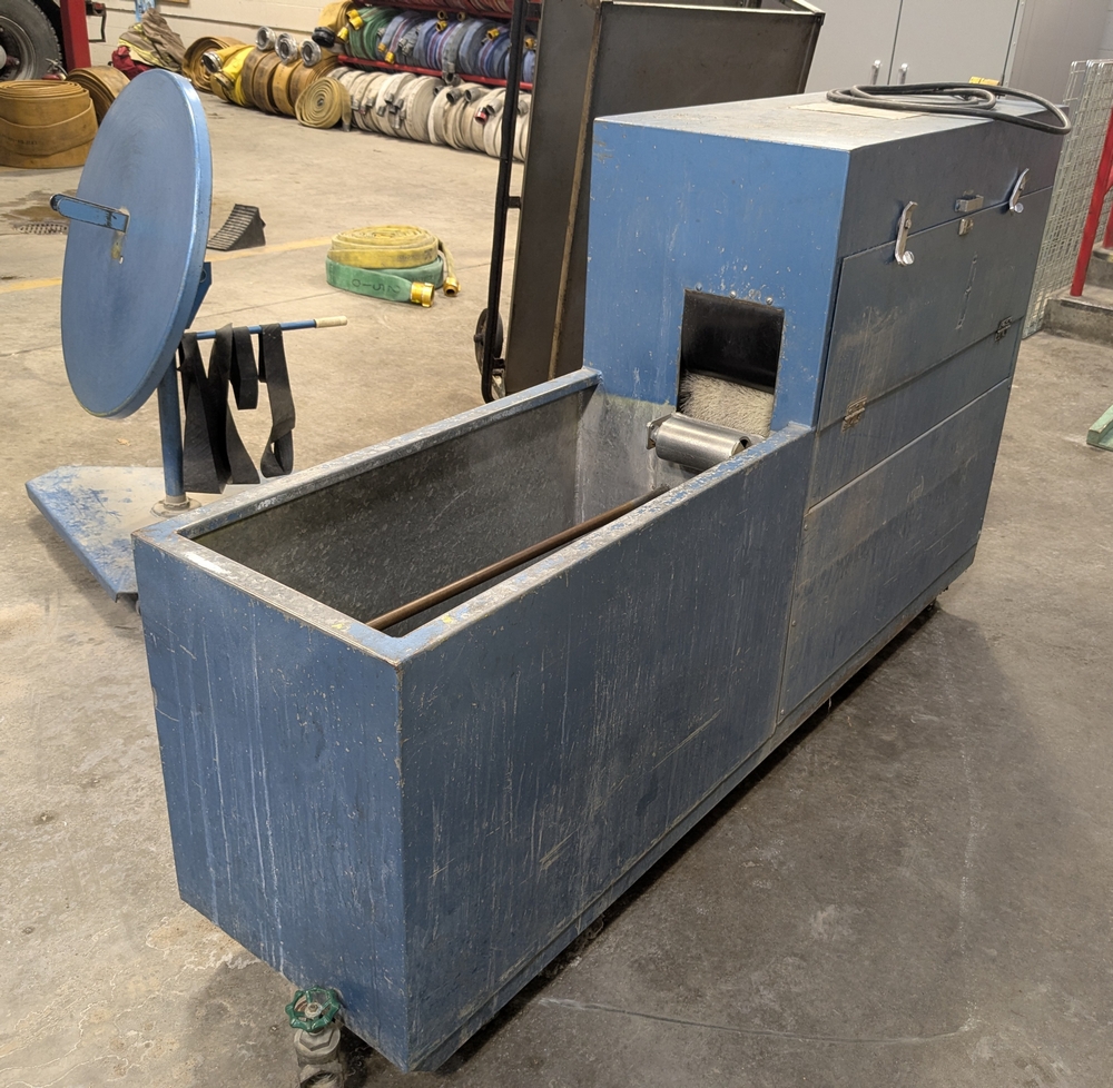 Items include 2003 Bauer H13-E3 high pressure breathing air compressor; 2003 Bauer three-position containment fill station; Roto-Jet fire hose washer w/ hose reel; Stihl 036 Pro chain saw; assorted fire hose fittings; 5" fire hose & more. Items are located in Lowville, NY.