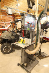 Kreg Foreman semi-automatic pocket-hole machine, model DB210, serial number 203437310, 120V electric unit mounted on a DeWalt rolling stand. Features an aluminum work surface with adjustable fence and clamping assembly as shown. Buyer is responsible for removal to the first disconnect. Excludes dust collection ductwork. No equipment is onsite to assist loading. Bring the proper tools, equipment, and help needed to load your items. Seller reports: nearly all the powertool (especially Festools) are in fantastic condition, low low use and have been kept in climate controlled garage.