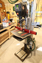 Nova Voyager DVR drill press, model 58000, equipped with DVR direct drive motor. Serial number 00307647. Mounted on a floor base and fitted with a DP-Pro 36 fence system. Includes a Llambrich JK-160-MT2 chuck with 3–16 mm (0.118–0.630 in.) capacity. Buyer is responsible for removal to the first disconnect. Excludes dust collection ductwork. No equipment is onsite to assist loading. Bring the proper tools, equipment, and help needed to load your items. Seller reports: nearly all the powertool (especially Festools) are in fantastic condition, low low use and have been kept in climate controlled garage.