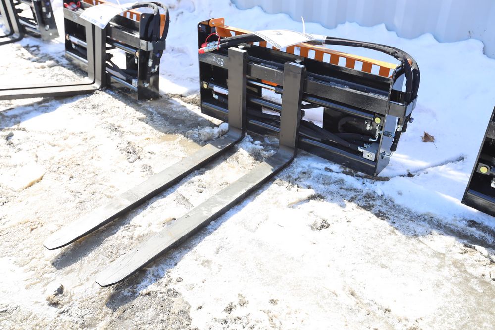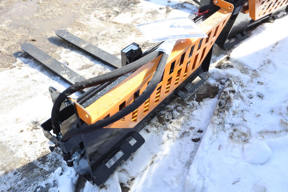 New 2026 Wolverine skid steer pallet fork attachment hydraulic adjustment, model PFA-11-3300G, 48" fork adjustment.