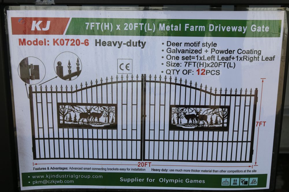 New 2026 KJ 20 foot Bi-Parting Iron gate 7 foot tall x 20 feet long two pcs total, Model K0720.