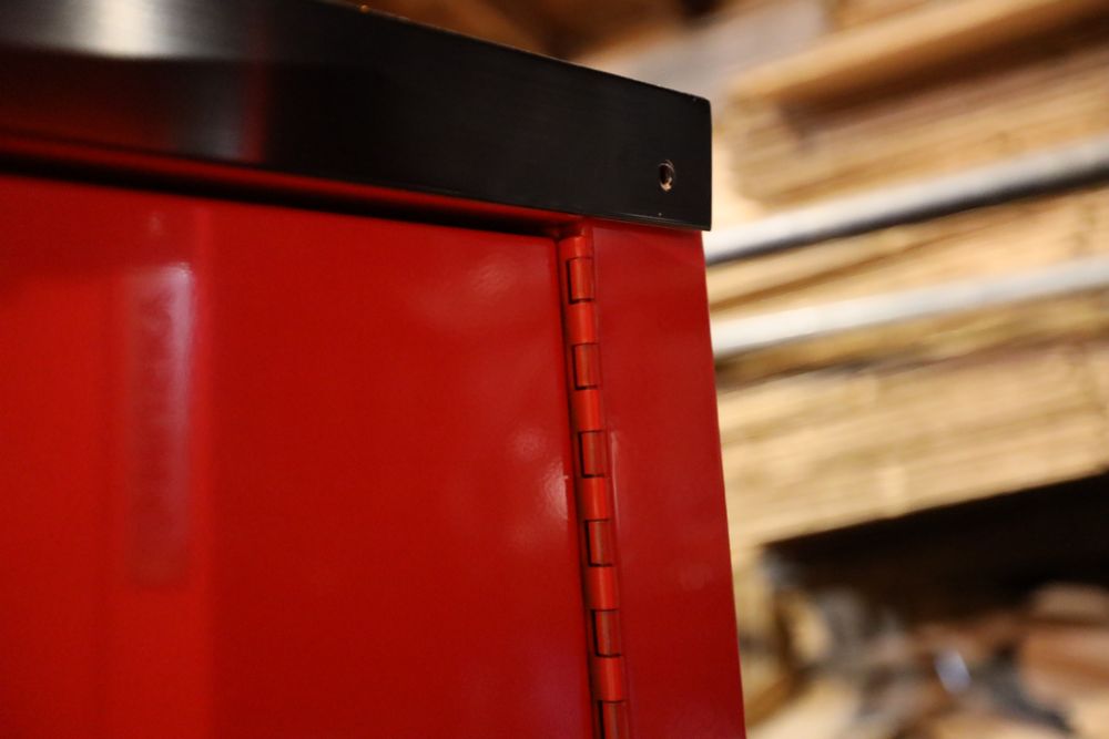 New Husky HPR063TLOCKERBL red tool locker featuring a sturdy construction with a secure locking mechanism. Model #HPR063TLOCKERRD. See photos for damage.