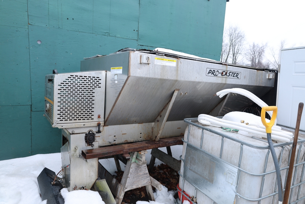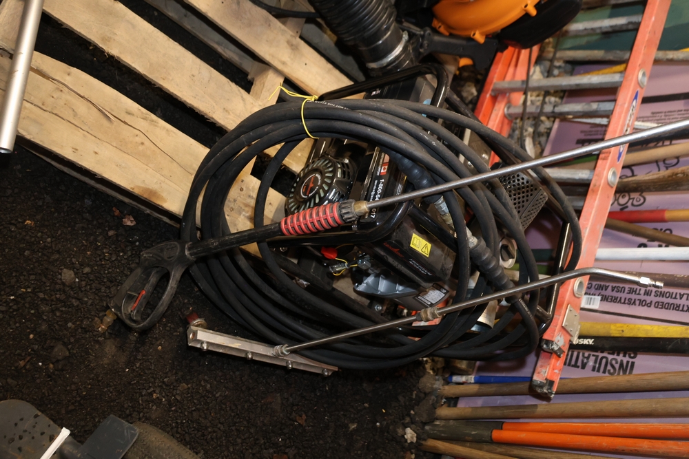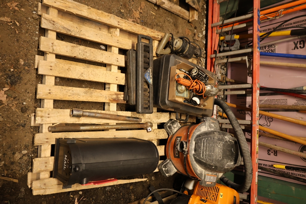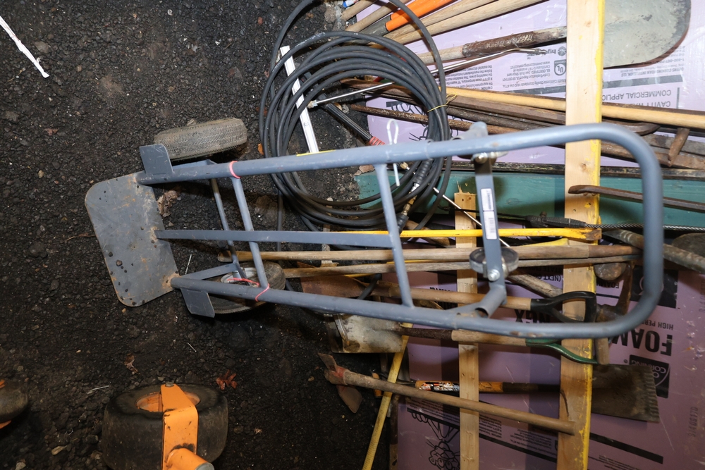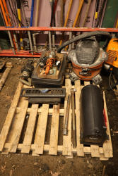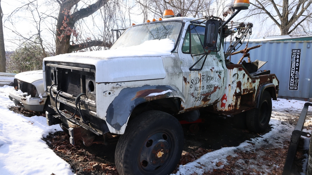 Items include Landhero mini excavator; 1974 General Motors tow truck; 1988 GMC V3500 Regular Cab 4WD; Fisher Pro-Caster industrial sander unit; Landhonor LHR-LB9510 leaf blower; Milwaukee hand truck; assorted stacked plywood sheets; Pittsburgh mechanics tool set; assorted traffic control safety equipment; 52cc gas powered multi tool power head with hedge trimmer attachment; Quick Cable electric tool; pink rigid foam insulation boards, welded wire mesh panels, Husky contractor clean up bags box, Grip Rite construction screws; PVC pipes & fittings; assorted dimensional lumbar & more. Items are located in Peekskill, NY.