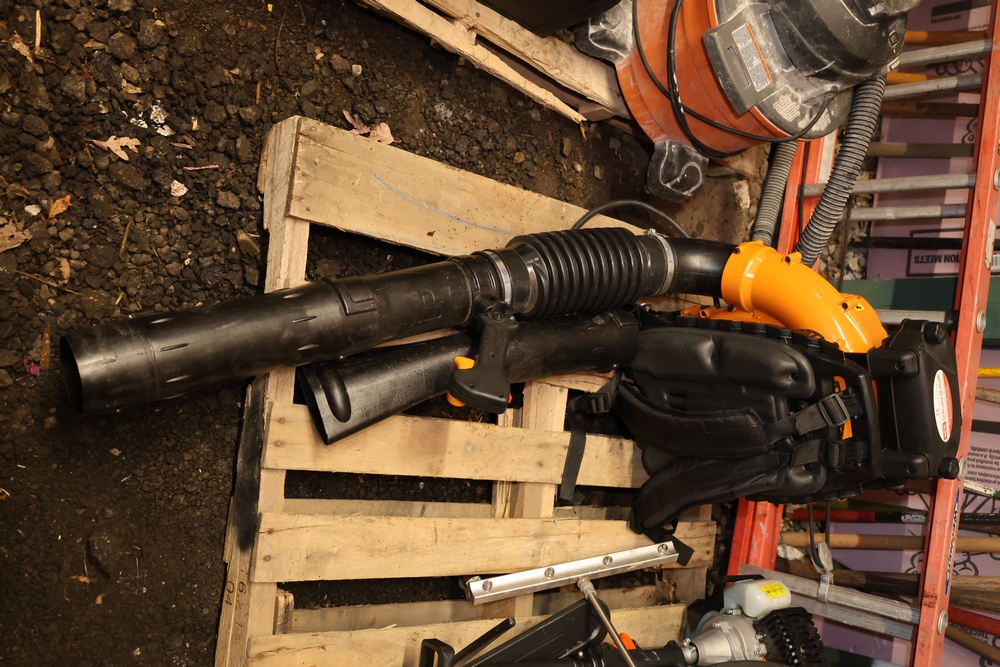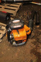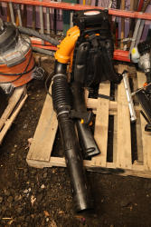 Landhonor LHR-LB9510 leaf blower with backpack harness, flexible discharge hose, control handle, and two blower tube attachments. Seller reports runs and operates as intended.