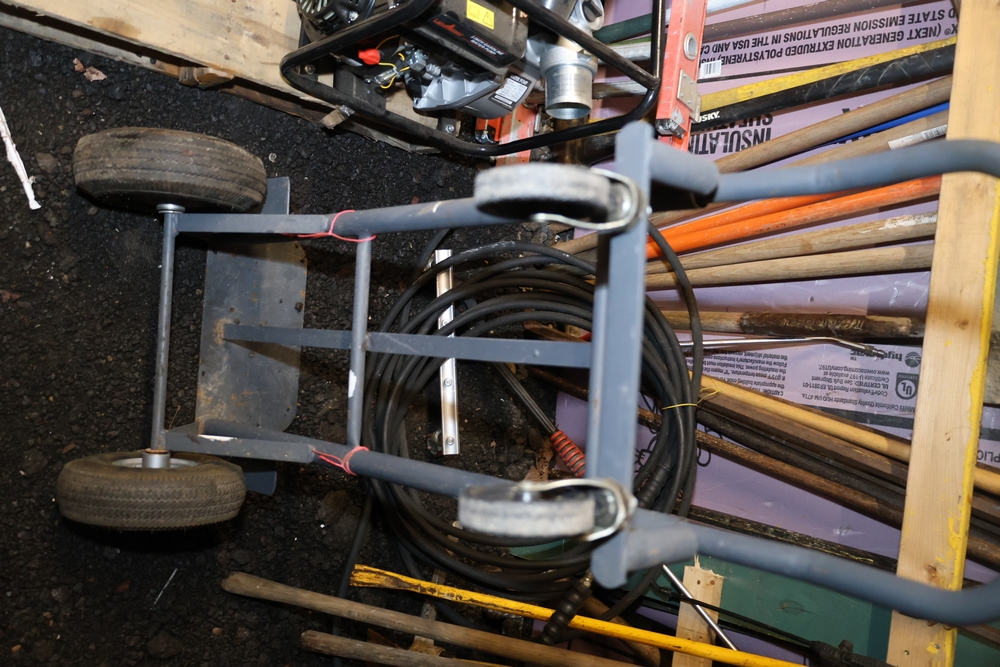 Items include Landhero mini excavator; 1974 General Motors tow truck; 1988 GMC V3500 Regular Cab 4WD; Fisher Pro-Caster industrial sander unit; Landhonor LHR-LB9510 leaf blower; Milwaukee hand truck; assorted stacked plywood sheets; Pittsburgh mechanics tool set; assorted traffic control safety equipment; 52cc gas powered multi tool power head with hedge trimmer attachment; Quick Cable electric tool; pink rigid foam insulation boards, welded wire mesh panels, Husky contractor clean up bags box, Grip Rite construction screws; PVC pipes & fittings; assorted dimensional lumbar & more. Items are located in Peekskill, NY.