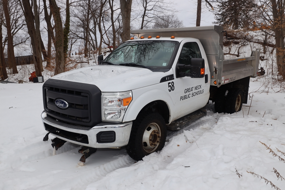 Items are 2014 Ford F-350 Super Duty dump truck & Up-Right one- person vertical lift. Items are located in Great Neck, NY.