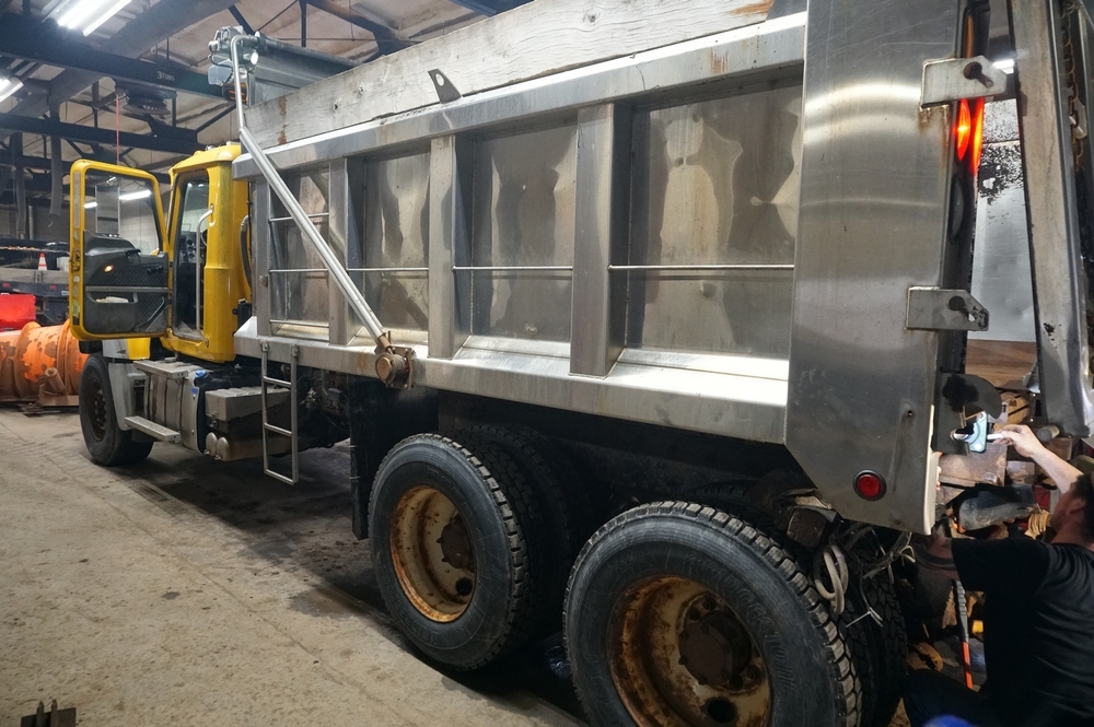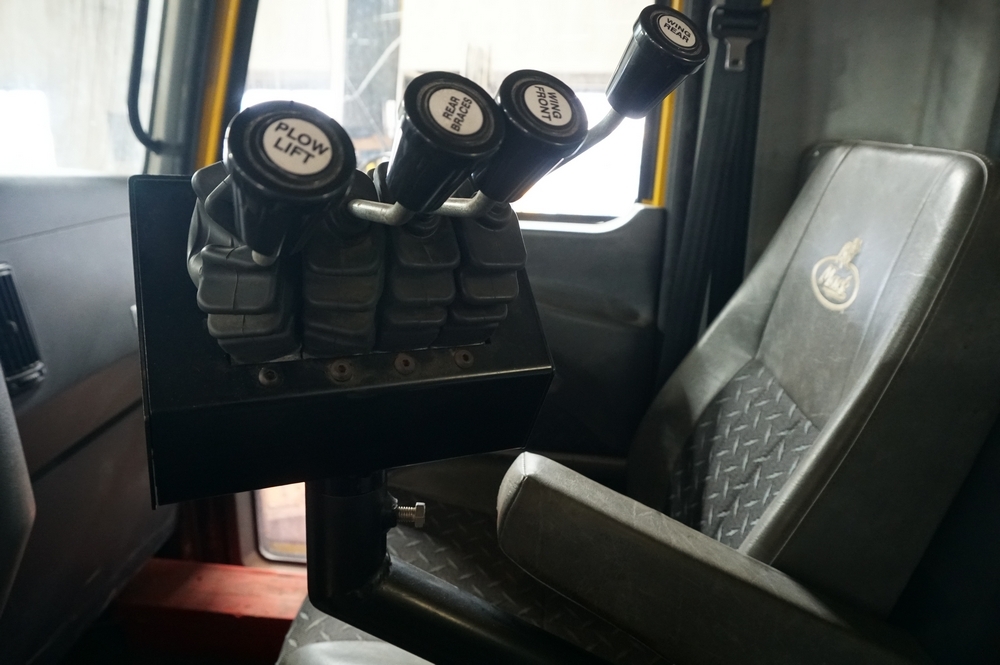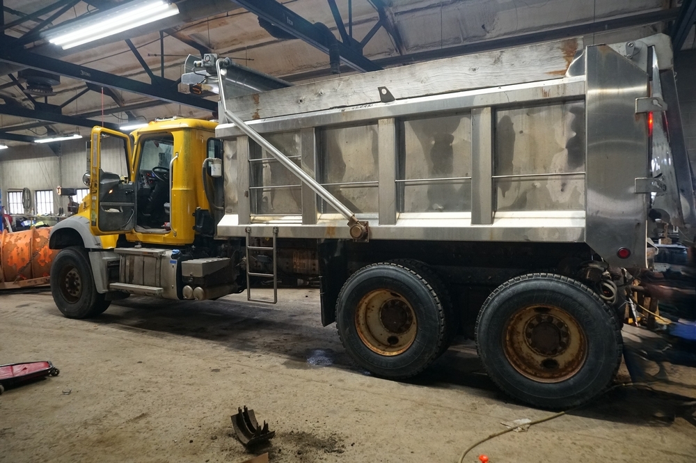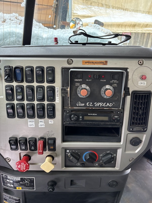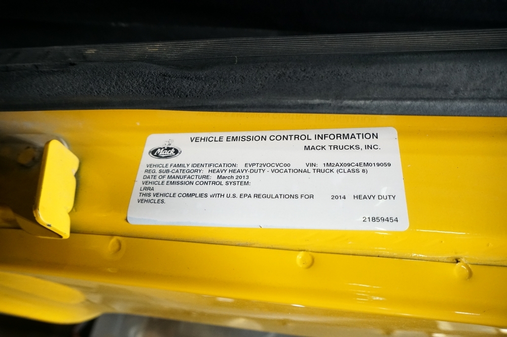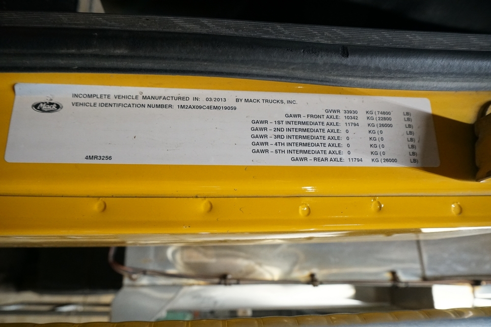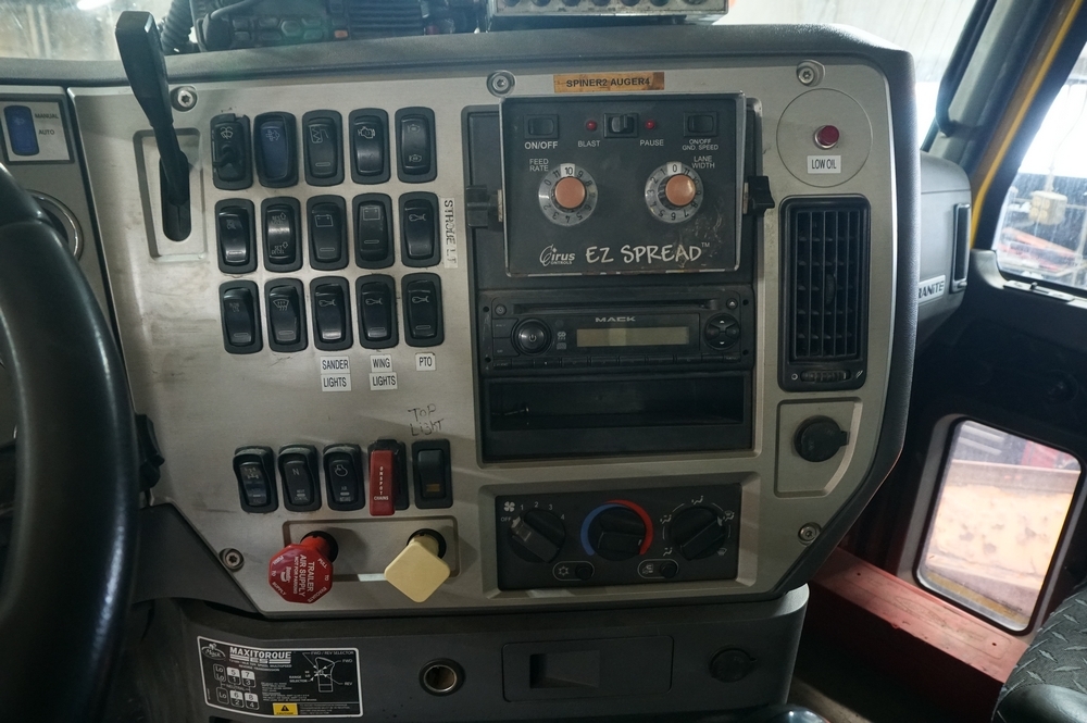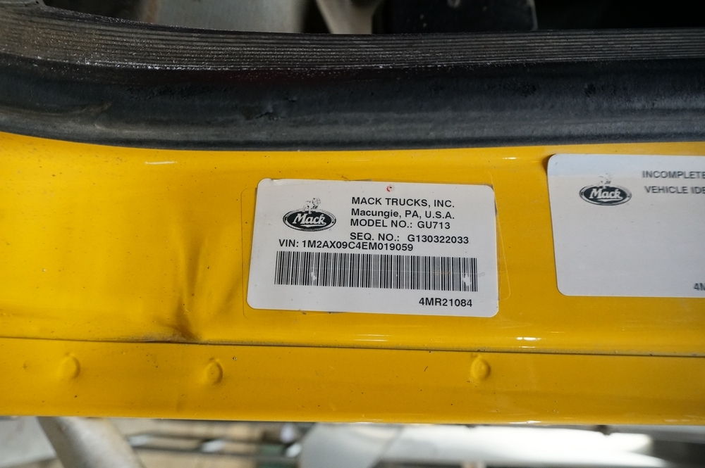 2014 Mack Granite GU713 Combination Dump Truck. VIN: 1M2AX09C4EM019059. Odometer reading: 143563. Engine: 12.9L 6 Cyl. in-line Diesel. Brakes: Air. Airflow 14' Combination Dump Body, Henderson 11' front plow with 12' right side wing, Cirus Easy Speed Spread Sander Controller, Air Plow Controls, Tilt Frame Plow Brackets, Shelving Arms articulate up and down. Seller Reports: New bearing on front and rear spinner, New Bearings on rear of bed chain drive axle, Crack on passenger side of hood, Currently in Service, Runs and Drives as it should. Radios, extinguishers, emblems removed. Includes Title and Key.