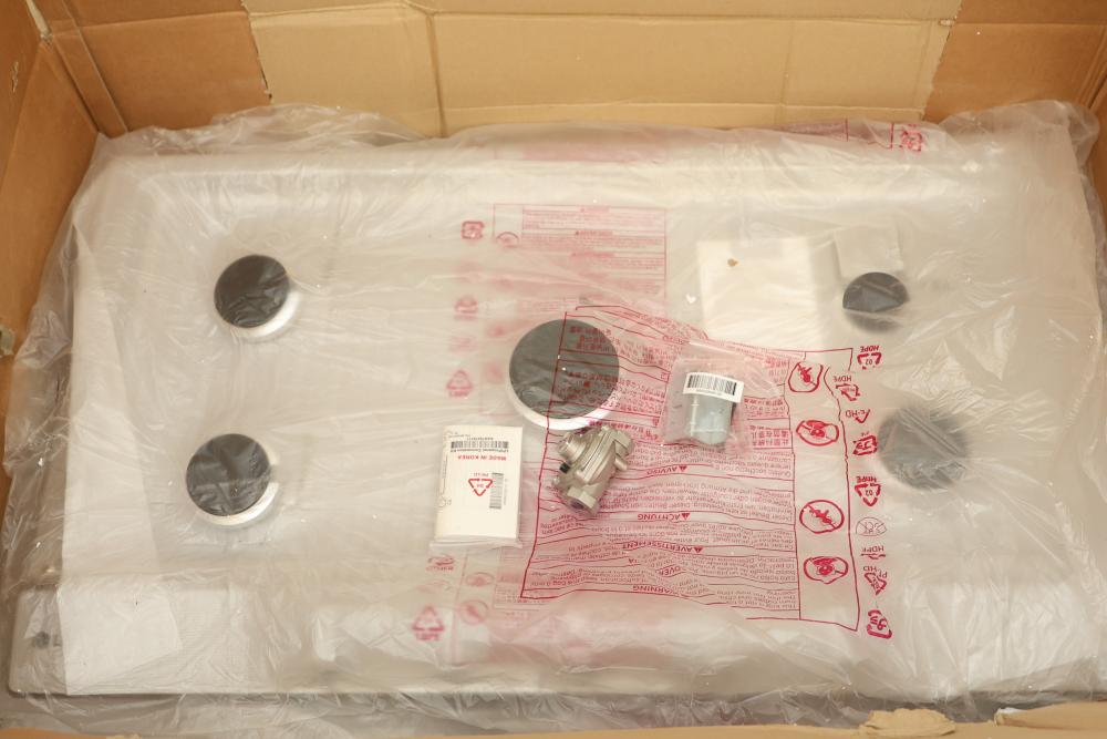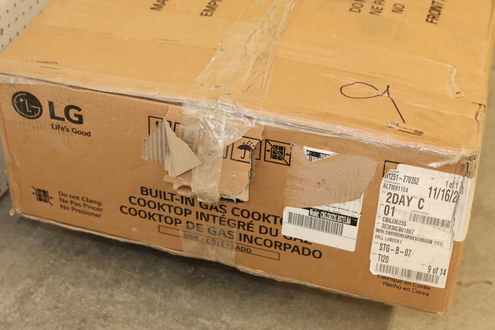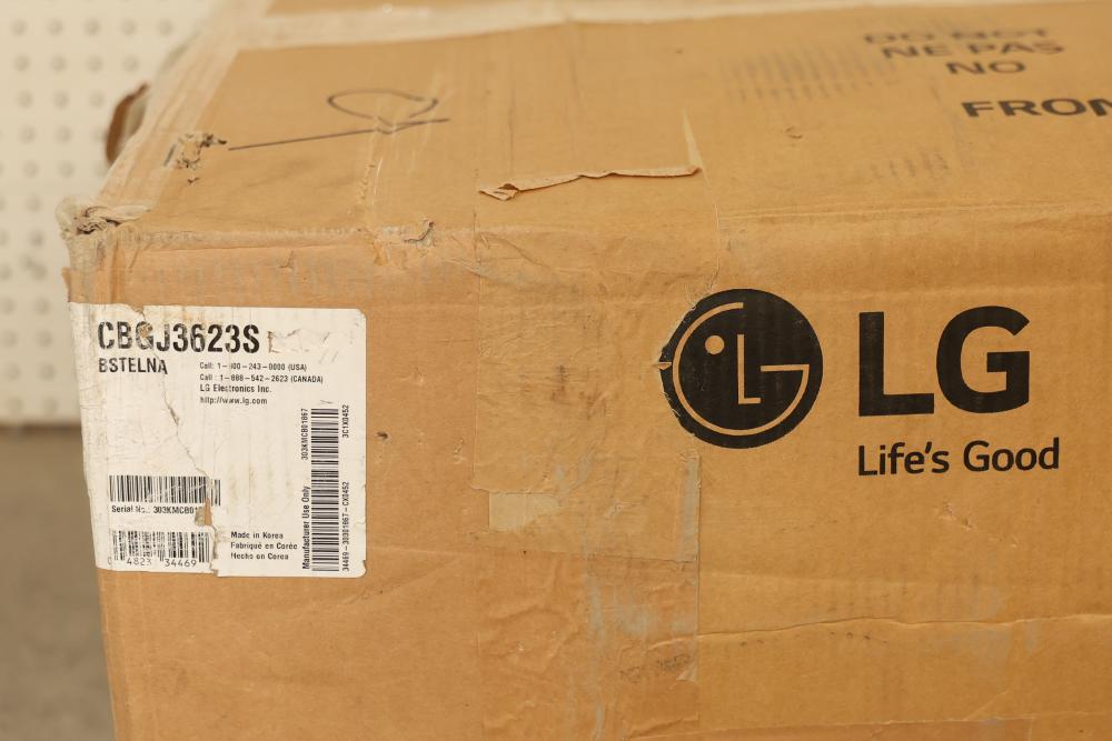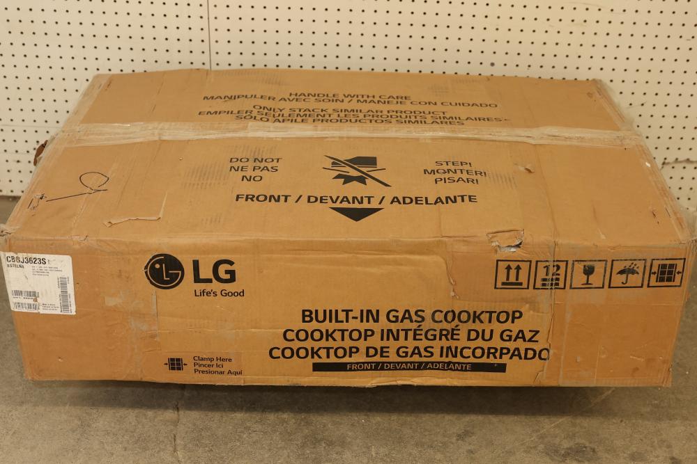LG CBGJ36235 36 Inch Gas Cooktop in Stainless Steel with 5 Burners and Easy Clean. Features a spacious surface and stainless steel design. Includes Easy Clean technology for hassle-free maintenance. Item is packaged in its original box and may show wear on the packaging. Pickup only.