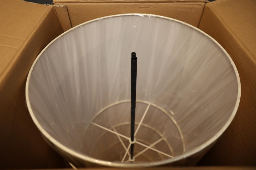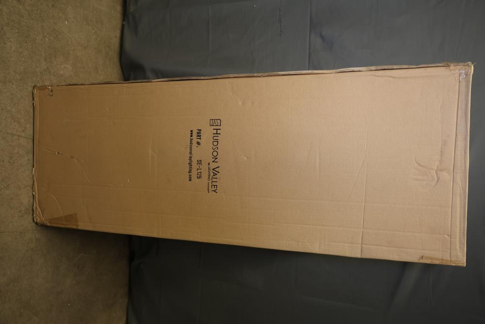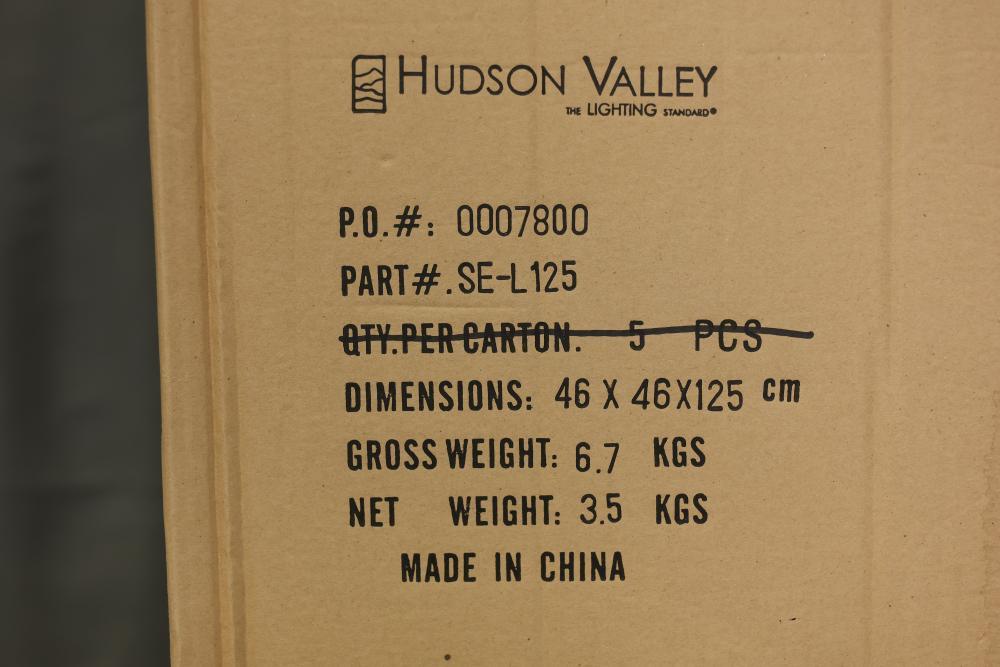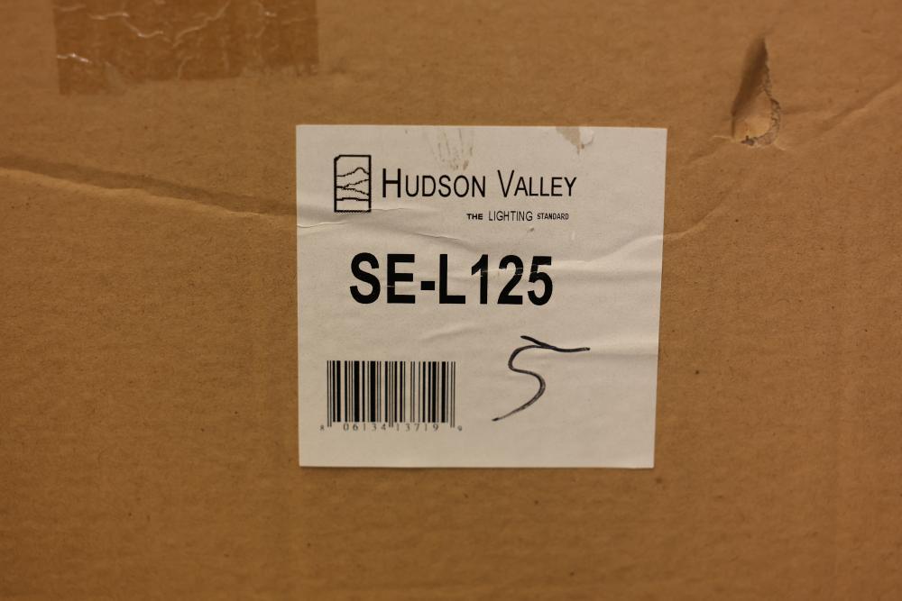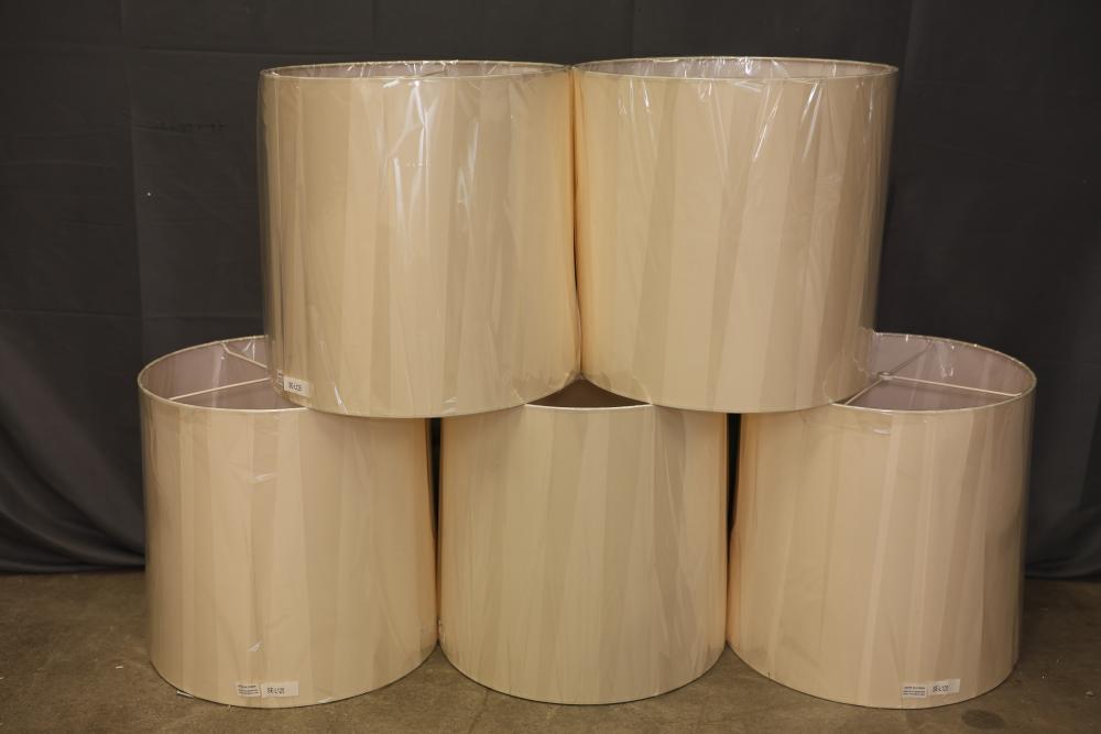 Hudson Valley Lighting SE-L125 Drum Lampshade Box of 5. Each lampshade has a cylindrical drum shape and is still in its original packaging. Dimensions for each lampshade are 46 x 46 x 125 cm. Pickup only.