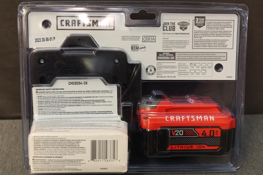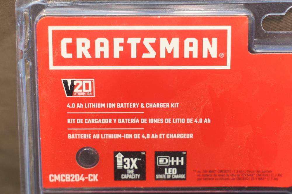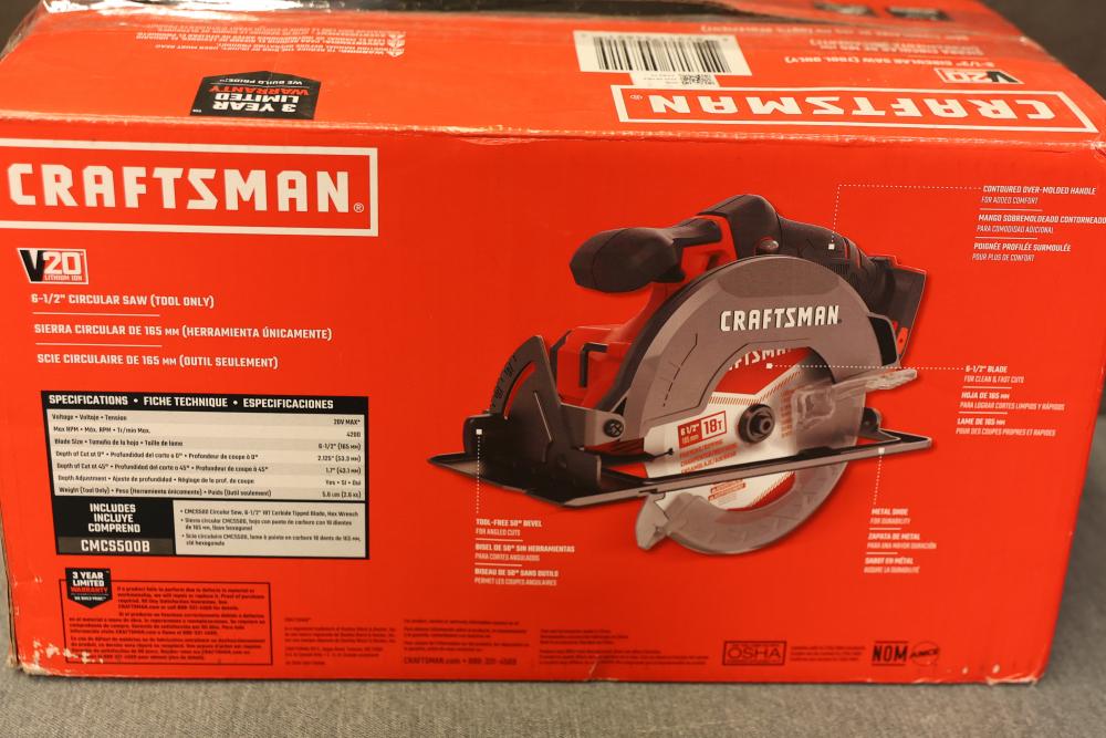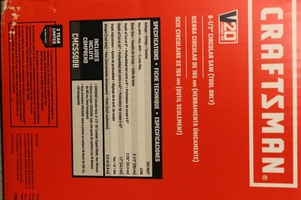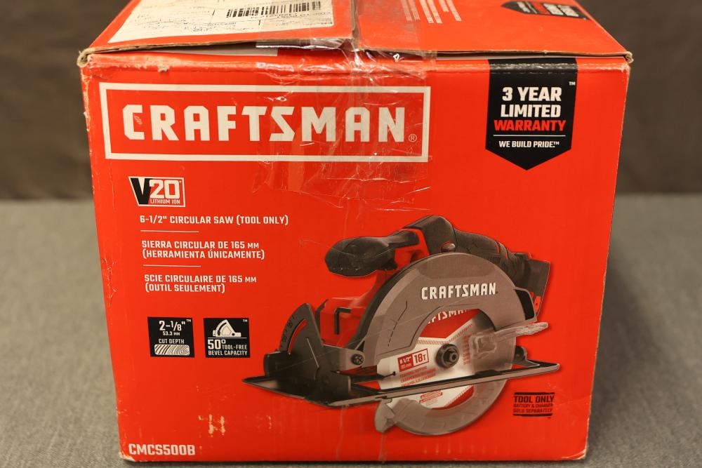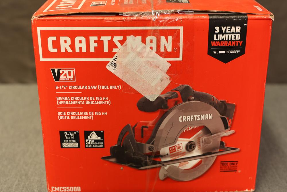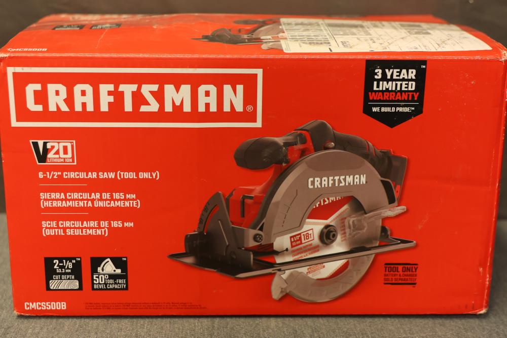 Craftsman CMCS500B V20 20-Volt 6.5 Inch Cordless Compact Circular Saw and Craftsman CMCB204-CK V20 4.0 Ah Lithium Ion Power Tool Battery Kit. Includes a 6.5-inch circular saw (tool only) and a battery and charger kit. The saw is designed for precision and ease while the battery offers 4.0Ah capacity with a charger. Pickup only.