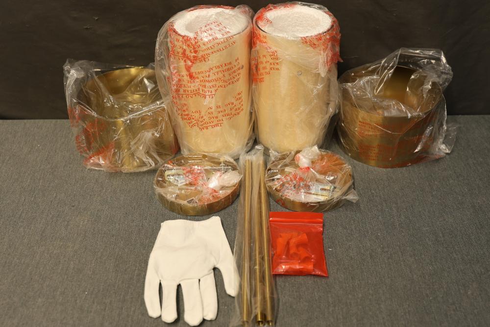 Seenming House SHG314HPBD1R6 2-Pack Gold Pendant Light. Includes two gold pendant lights with all necessary components for assembly, as shown in the packaging. Items are unused and arrive in the original manufacturers box, which is in good condition. Pickup only.