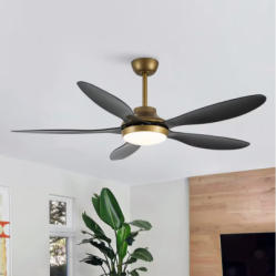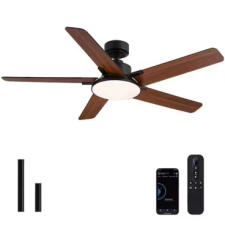 LuminFan WY-009D-52-01 52 Inch Indoor Black Downrod Mount Modern Ceiling Fan with Integrated LED and Remote Control. Features a 52-inch blade span, an integrated LED light, and a remote control for convenient operation. Designed for indoor use with a modern black finish and a downrod mount installation. Includes installation manual and required components. Pickup only.