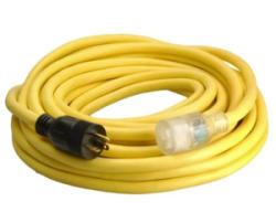 Southwire 26188802 10/3 SJTOW 50 Foot 20 Amp Outdoor Heavy-Duty Yellow Generator Extension Cord. Designed for equipment with 5-20 or 5-15 plugs, this cord features a lighted end to indicate power status. Rated for 125 volts and 2500 watts for heavy-duty outdoor use. Pickup only.