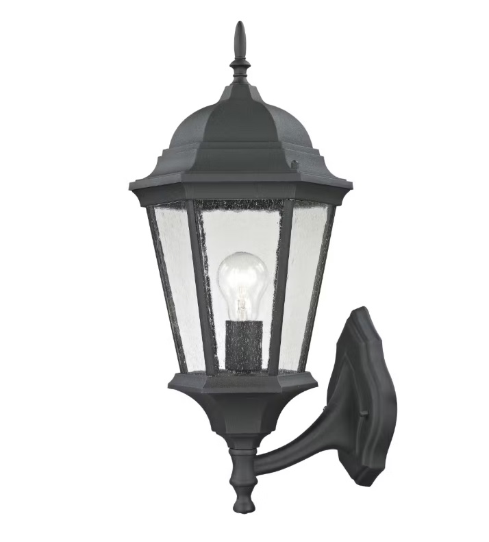Thomas Lighting by ELK 8111EW/65 Temple Hill 1-Light Outdoor Sconce, 21 Inches High. Finished in matte textured black, this sconce accommodates one 100-watt bulb (sold separately). Dimensions include a height of 21 inches, width of 9.5 inches, and extension of 10 inches. Comes in original packaging. Pickup only.