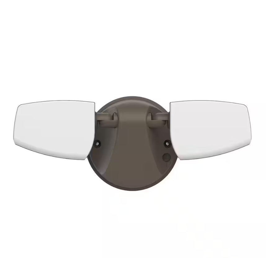 Halo ESF2A4FB LED Twin Head Floodlight in Bronze, 2300 Lumens. Features 180W equivalent brightness, 4000K color temperature, and delivers a total of 2300 lumens. Designed with a corrosion-resistant polycarbonate housing and a simple installation process. Pickup only.