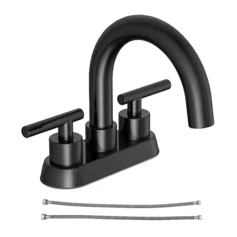 Glacier Bay 4512721O Cartway 4 Inch 2-Handle High-Arc Bathroom Faucet in Matte Black. This faucet features a sleek matte black finish, dual-handle operation, and includes necessary installation hardware. Item is in original packaging, with some visible wear on the box. Pickup only.