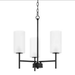 Home Decorators Collection HD-1871-BK-CV Florabelle 3-Light Matte Black Finish Shaded Chandelier with Frosted Glass Shades. This chandelier features a matte black finish with frosted glass shades and includes all necessary components for assembly. It supports three 40W max bulbs (not included) and has an adjustable height ranging from 18.06 inches to 59.50 inches. Pickup only.