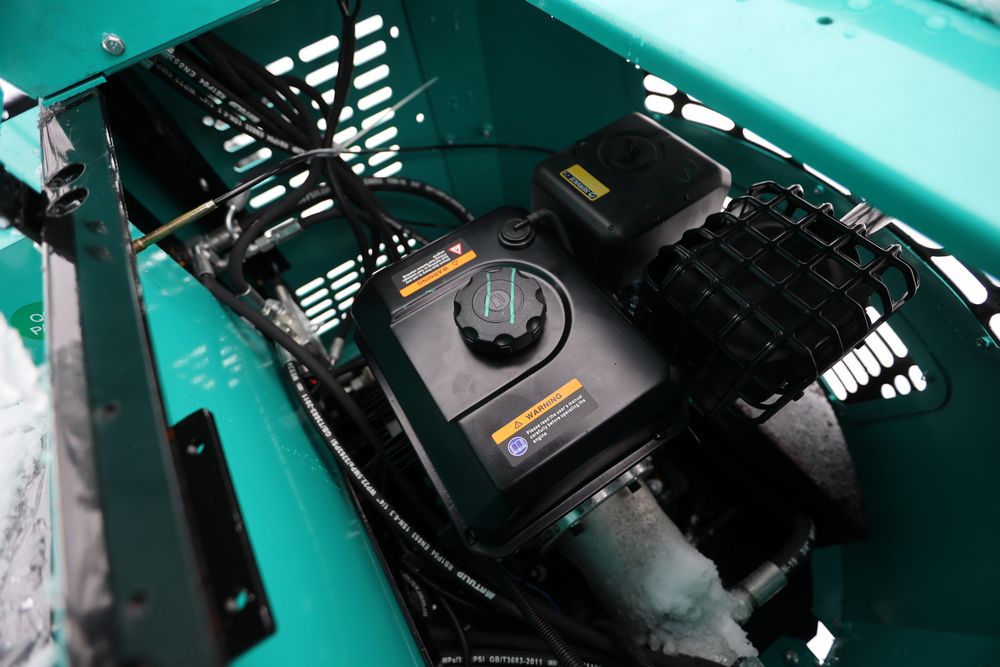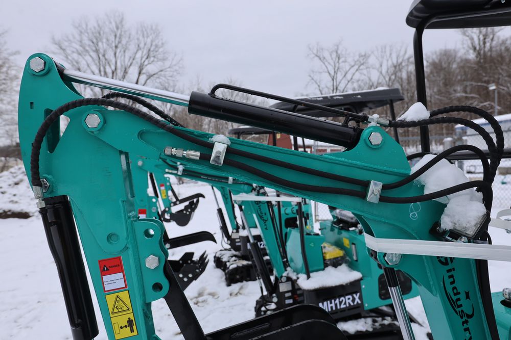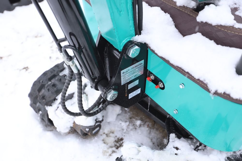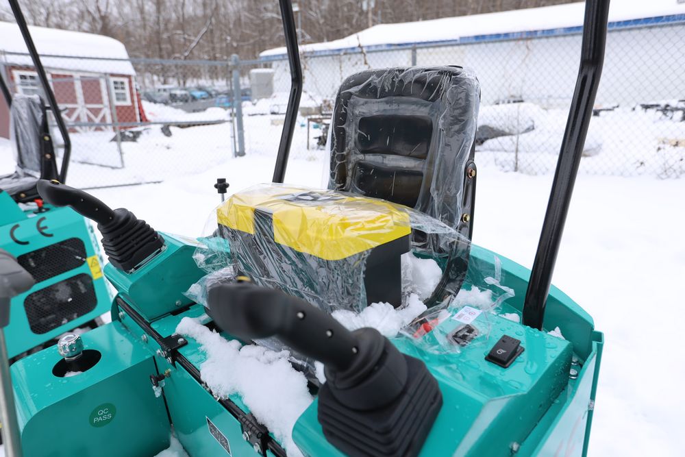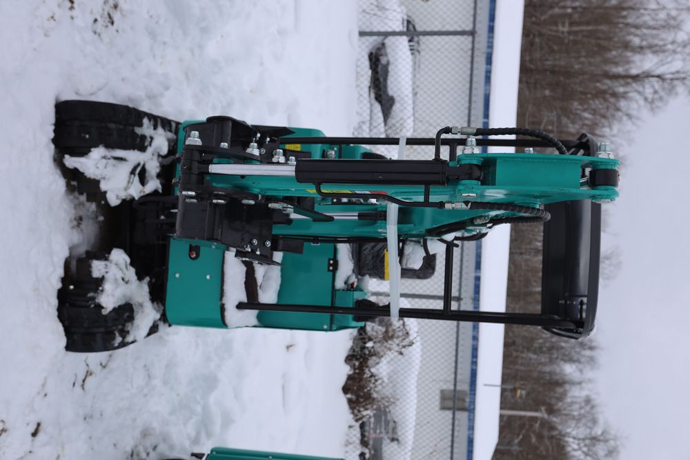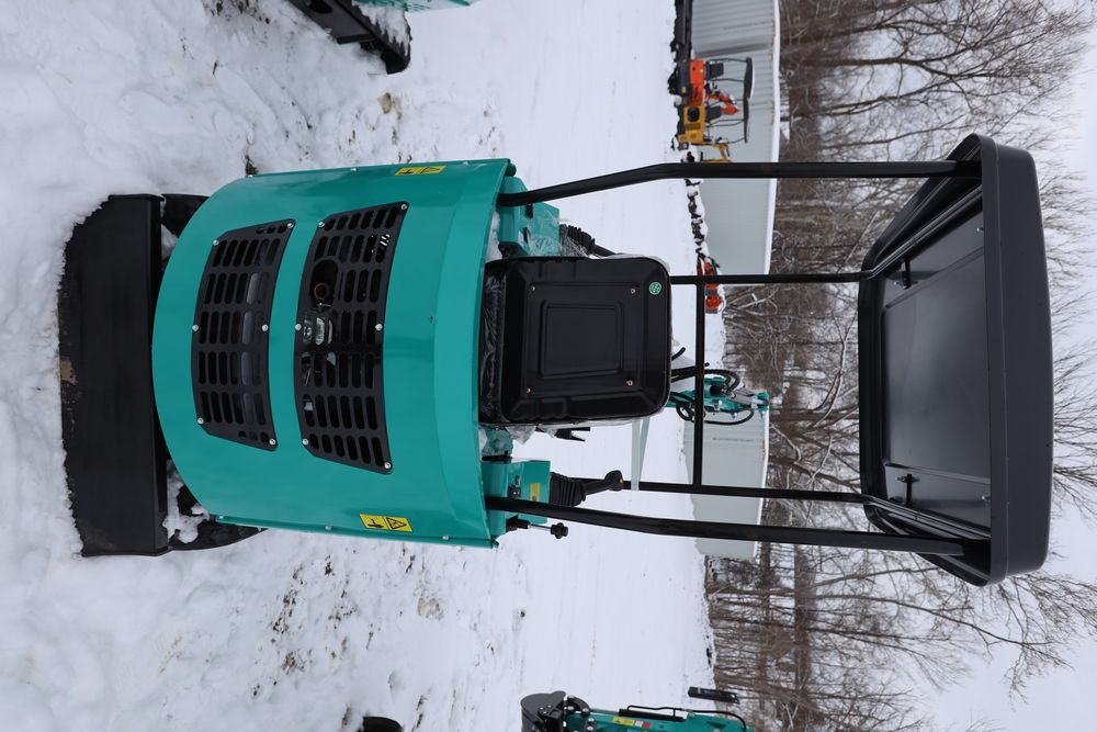 New 2026 CFG Industrial gas powered mini Excavator model H15R with 420cc gasoline engine, bucket, 4' long tracks, 38.5" wide base, 6" wide tracks, canopy, hydraulic boom & bucket controls, pilot system, thumb, dozer blade. Hours reading less than 1 hour.