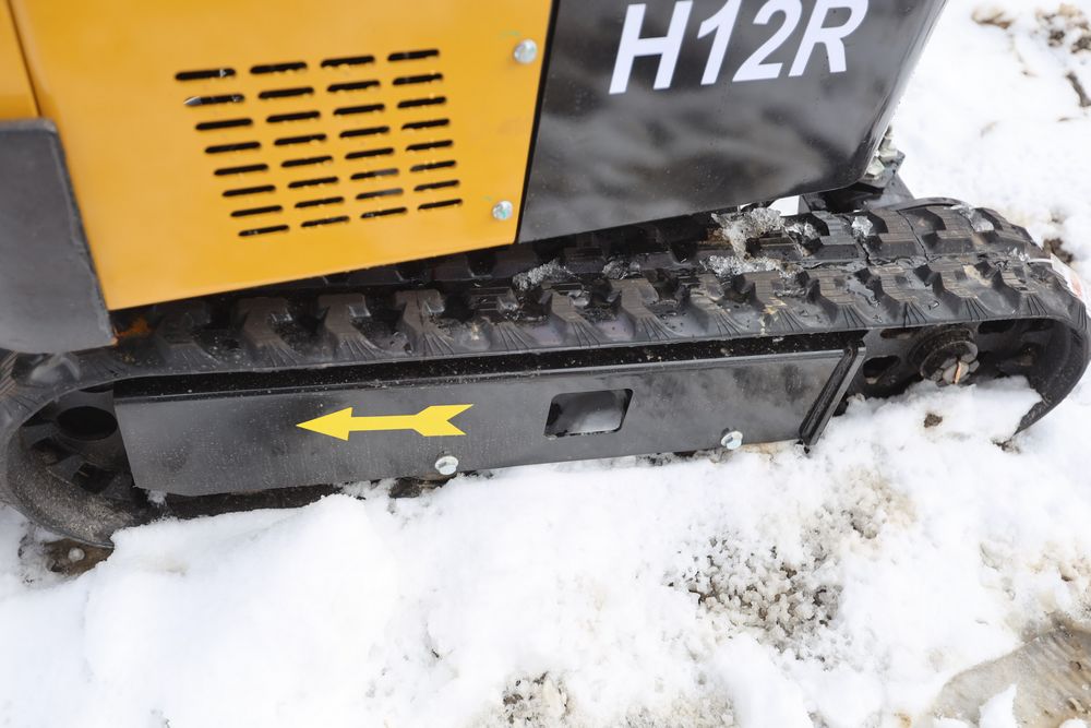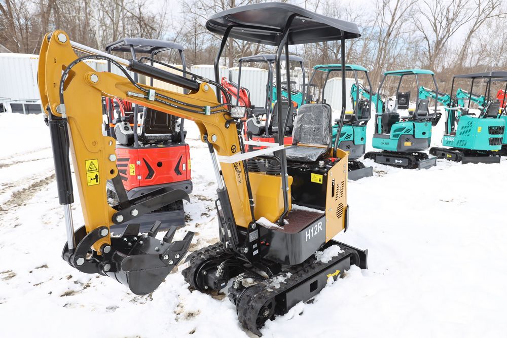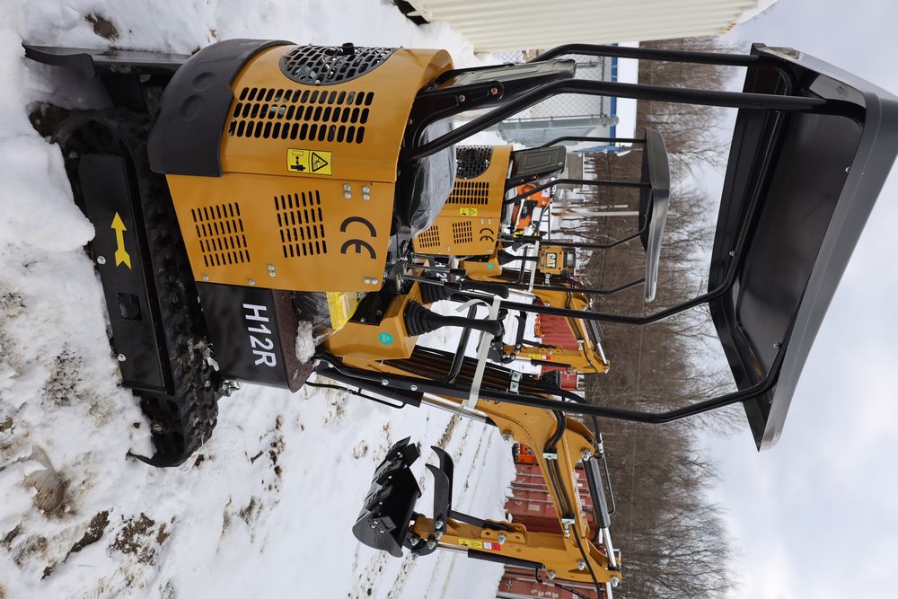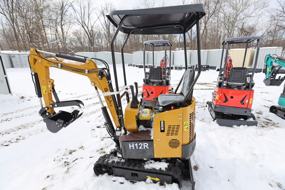 New 2026 CFG Industrial gas powered mini Excavator model H12R with 420cc gasoline engine with EPA, bucket, 4' long tracks, 36.5" wide base, 6" wide tracks, canopy, hydraulic boom & bucket controls, dozer blade. Hours reading less than 1 hour.