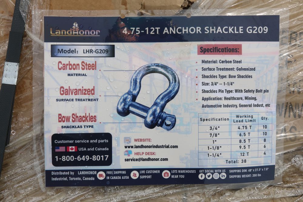 New 2026 Landhonor G209 anchor shackles sizes including 3/4", 7/8", 1", 1-1/8", and 1-1/4" model: LHR-G209,