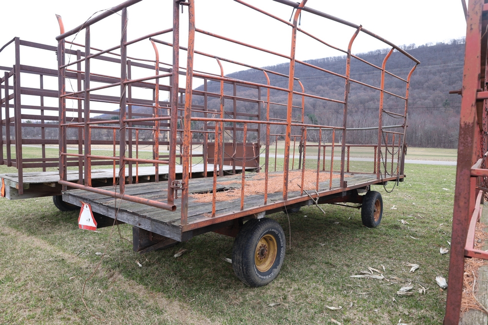 Items include 1980 Peterbilt 359 dump truck. 1989 International 1654; 1998 International 4700; 2001 Triton; New Holland BC5070 square baler; IMT 9800 Series crane attachment; Hesston 3710 hay tedder; Allis-Chalmers bale wagon; John Deere 444 corn head; set of large agricultural tractor tires; concrete form supplies & more. Items are located in Hopewell Junction, NY.