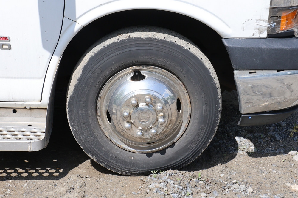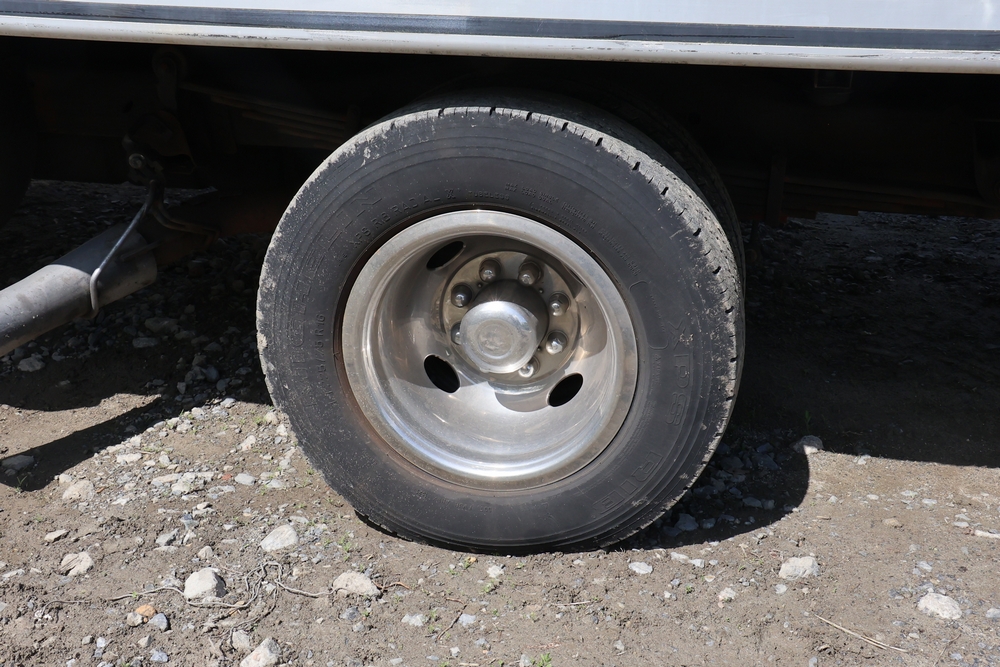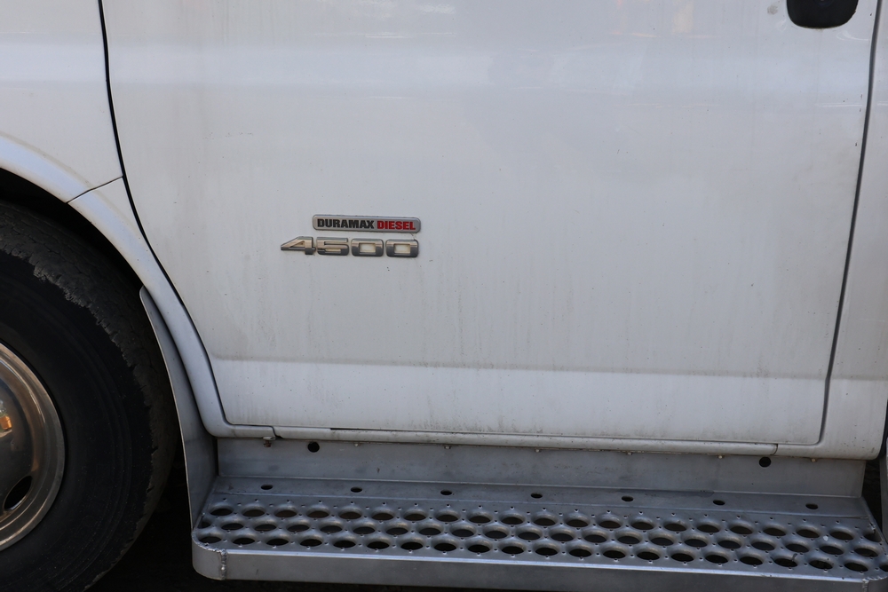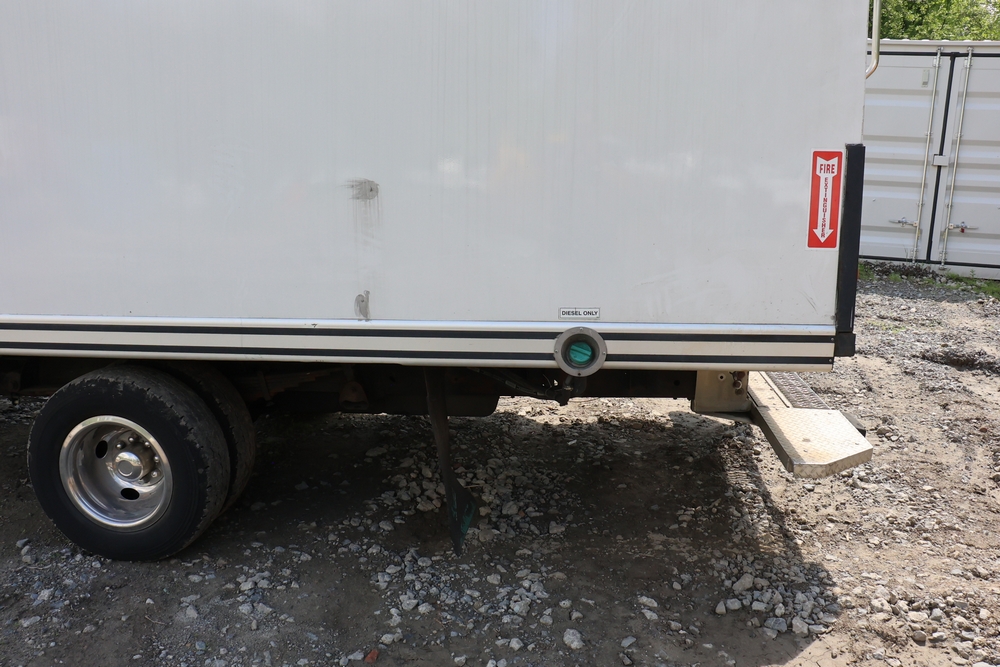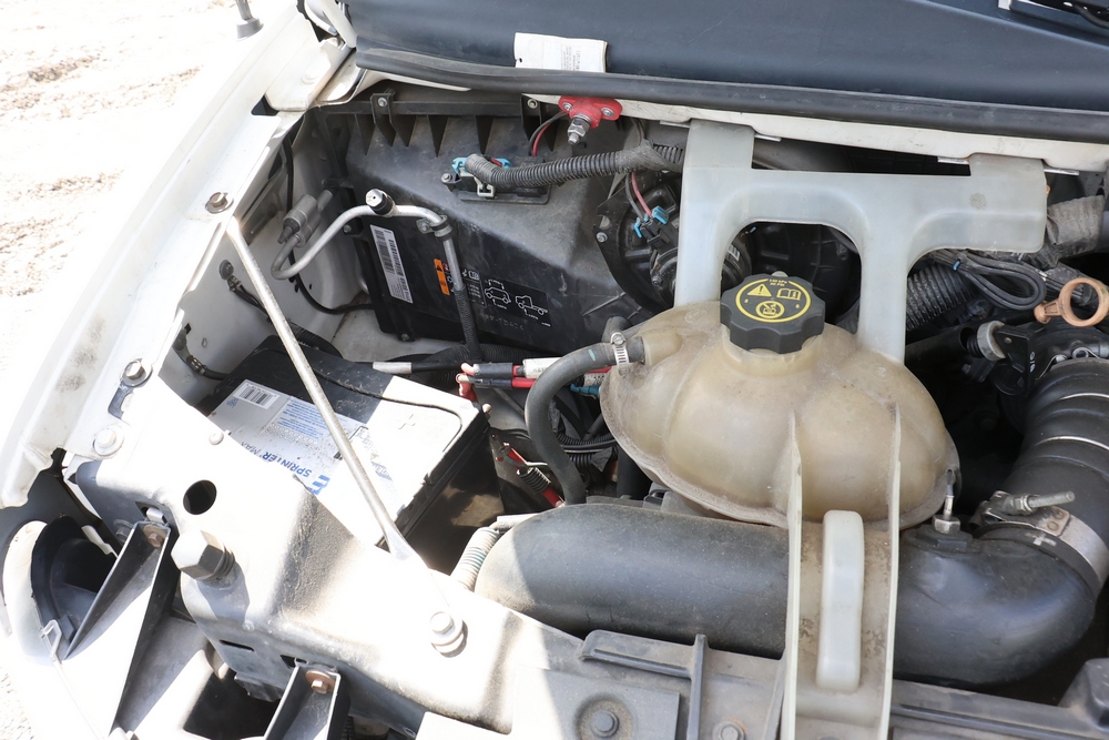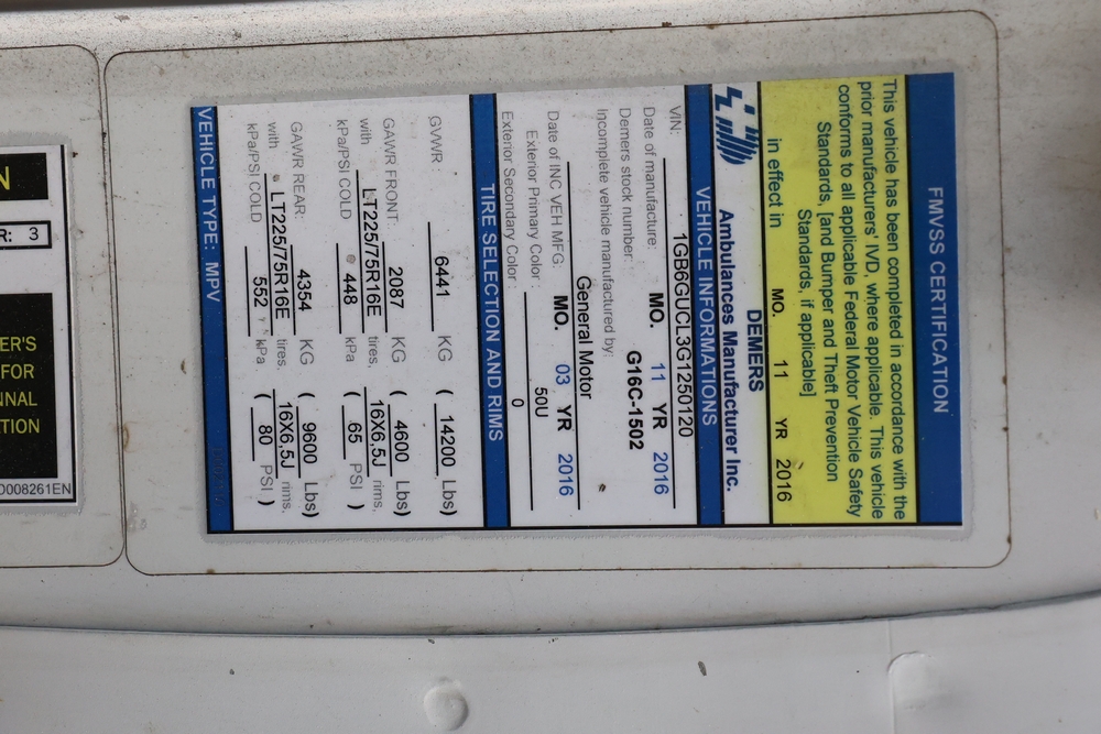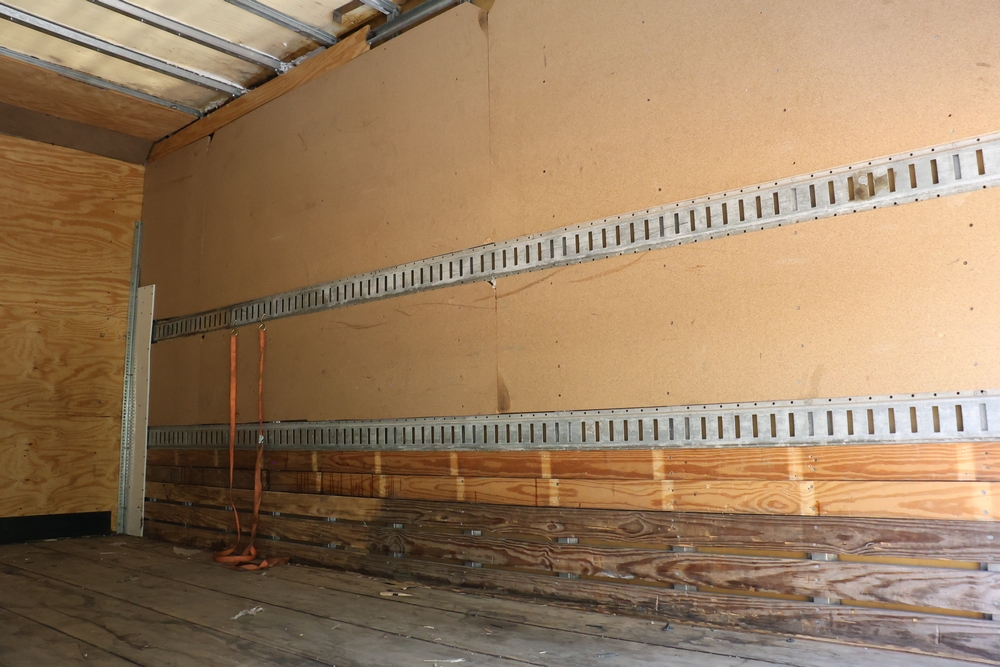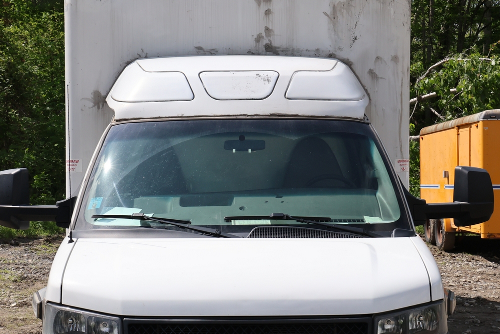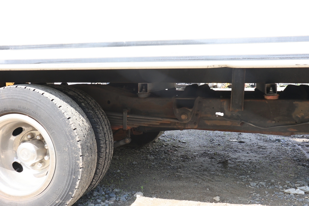 2016 Chevrolet Express G33803 box truck. VIN: 1GB6GUCL3G1250120. Odometer reading: 196,184 miles. Engine: 6.6L V8 OHV 16V Turbo diesel. Transmission: Automatic. Exterior: White cab and box body with dual rear wheels, rear roll-up door, and step bumper. Interior: Gray cloth seating with power outlets, manual climate controls, and factory AM/FM stereo system. Runs and drives. Keys, Title & Bill of Sale Available. Mileage will vary at the time of pickup.
