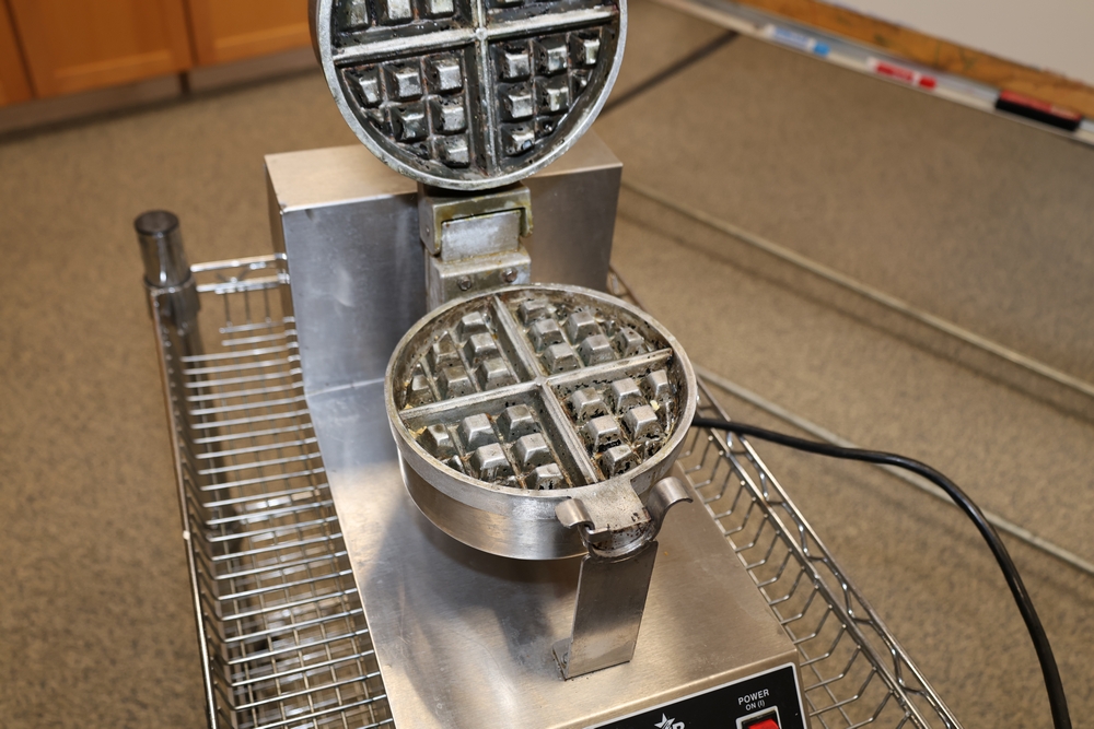 Items include Kyocera standup copy machine; Bunn coffee machines; Mastercraft commercial floor cleaner/buffer; vintage Globe commercial slicing machine; vintage Kodak projector; vintage poker tables; rubber kitchen interlocking floor mat; assorted steak knives; coffee cups/saucers; dinner plates; Minolta scanner; GE microwave; vintage fire extinguisher; vintage Indian pack; metal roll-up shutter & more. Items are located in Hopewell Junction, NY.