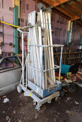 items include Genie PLC-30 personnel lift; Wayne WaterBUG submersible pump; aluminum 32' extension ladders; dump truck tarp system; coiled corrugated hose; DeWalt angle grinders; Snap-on double flaring tool kit, micrometer set; Solo backpack sprayer; Crown C9C towable concrete mixer; assorted lumber including dimensional boards & plywood; shovels, spades, rakes; 1976-1985 Chevrolet K10 pair of pickup truck doors & more. Items are located in Peekskill, NY. All lots subject to Seller approval. Invoices will be sent following Seller approval.