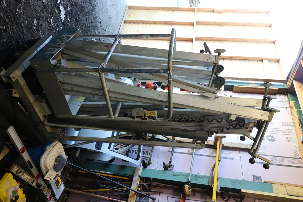 items include Genie PLC-30 personnel lift; Wayne WaterBUG submersible pump; aluminum 32' extension ladders; dump truck tarp system; coiled corrugated hose; DeWalt angle grinders; Snap-on double flaring tool kit, micrometer set; Solo backpack sprayer; Crown C9C towable concrete mixer; assorted lumber including dimensional boards & plywood; shovels, spades, rakes; 1976-1985 Chevrolet K10 pair of pickup truck doors & more. Items are located in Peekskill, NY.