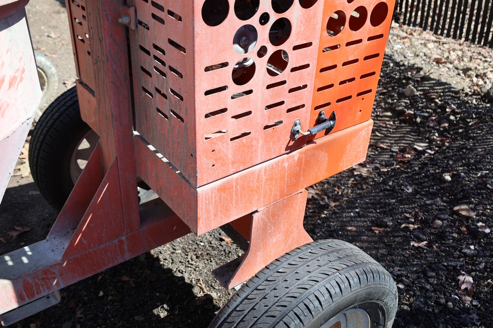 items include Genie PLC-30 personnel lift; Wayne WaterBUG submersible pump; aluminum 32' extension ladders; dump truck tarp system; coiled corrugated hose; DeWalt angle grinders; Snap-on double flaring tool kit, micrometer set; Solo backpack sprayer; Crown C9C towable concrete mixer; assorted lumber including dimensional boards & plywood; shovels, spades, rakes; 1976-1985 Chevrolet K10 pair of pickup truck doors & more. Items are located in Peekskill, NY.