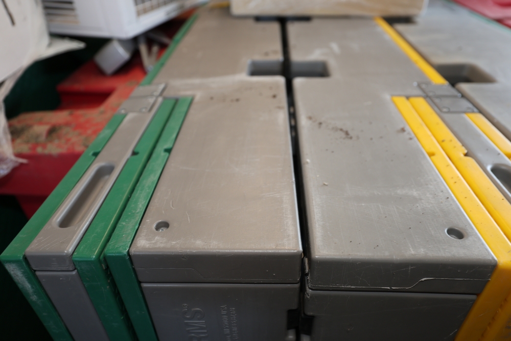 Items include 2001 GMC Savana 3500 Corbeil minibus; Amaco metal enameling kiln, Garland six-burner stove top/range; Traulsen & Co., Inc. six-door refrigerator; Metro Flavor View C 175 heated cabinet; Frigidaire window A/C unit; Clarke carpet extractor; theatrical light bars; custom wood drafting table/cabinet; Concept 2 rowing fitness machine & Lifefitness treadmill; truck-mounted Brine liquid sprayer; iPhones & Verizon cellular flip-phones/accessories; baseball playing machine; Western snow plows; computer tables; SunLite LED three-tier garden rack; art shelves; multicolored plastic choral risers; student desks; metal folding chairs & more. Items are located in Yorktown Heights, NY.
