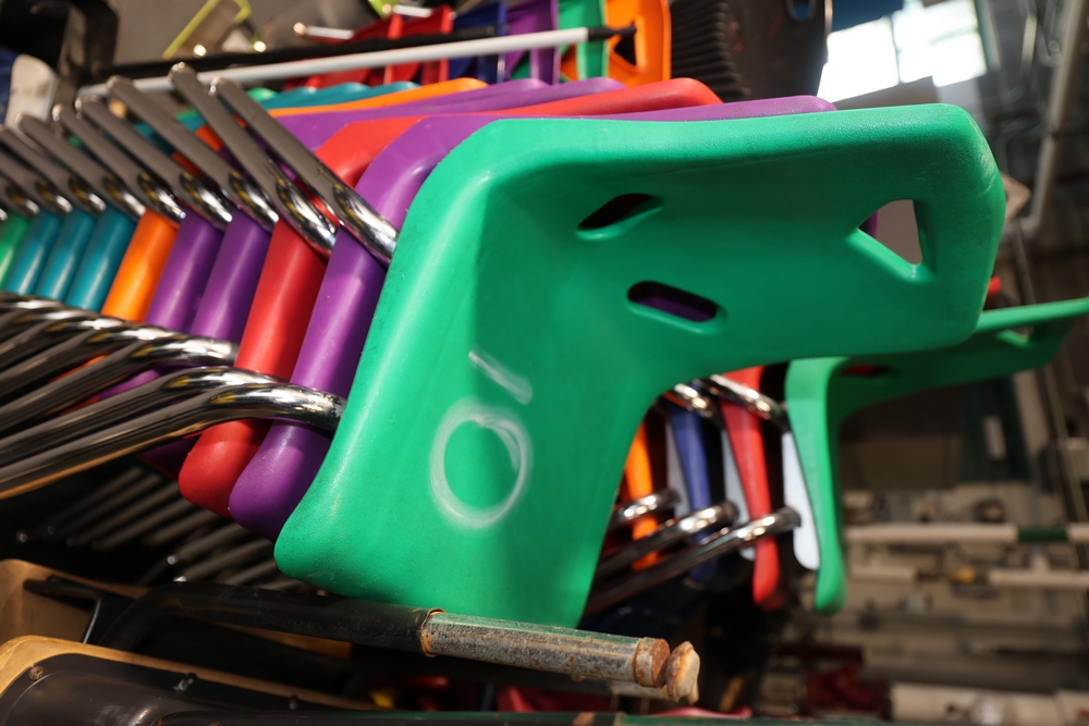 Items include 2001 GMC Savana 3500 Corbeil minibus; Amaco metal enameling kiln, Garland six-burner stove top/range; Traulsen & Co., Inc. six-door refrigerator; Metro Flavor View C 175 heated cabinet; Frigidaire window A/C unit; Clarke carpet extractor; theatrical light bars; custom wood drafting table/cabinet; Concept 2 rowing fitness machine & Lifefitness treadmill; truck-mounted Brine liquid sprayer; iPhones & Verizon cellular flip-phones/accessories; baseball playing machine; Western snow plows; computer tables; SunLite LED three-tier garden rack; art shelves; multicolored plastic choral risers; student desks; metal folding chairs & more. Items are located in Yorktown Heights, NY.