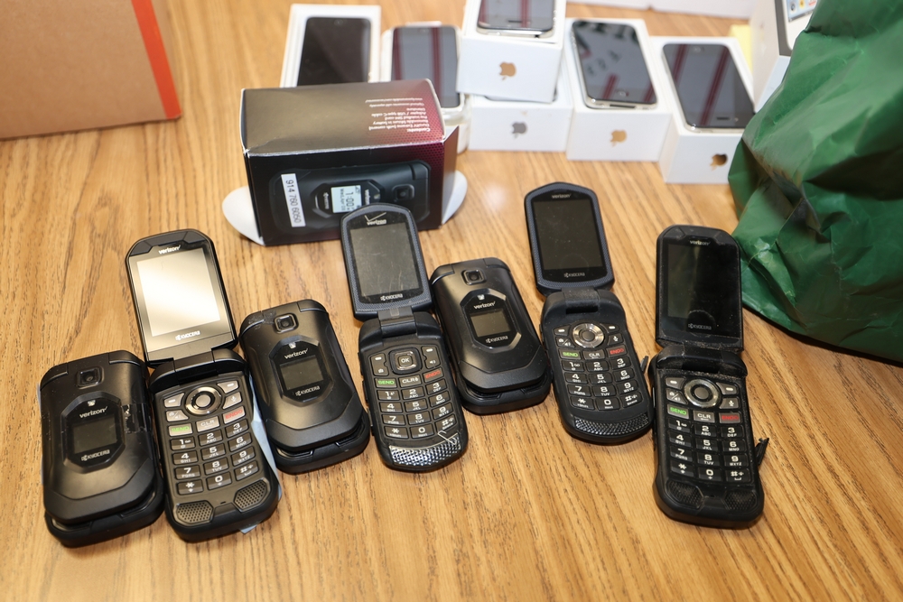 Lot of iPhones and Verizon cellular flip phones (and accessories), Location: O&M Office.