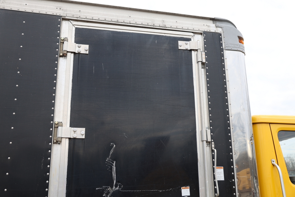 2002 International 4700 with a 7.6L L6 DIESEL engine. VIN: 1HTSCAAM42H408967. Odometer reading: 26159. Body: conventional cab. 4X2, Morgan box body, side access door, roll-up rear door, amber beacon, automatic transmission. Runs and drives but does not have brakes. Must be towed. Title and key available.