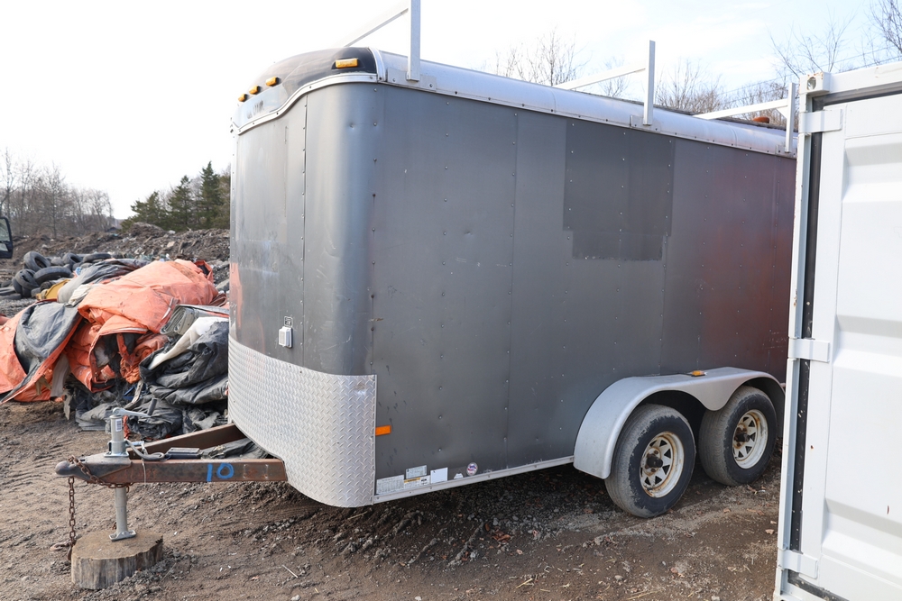2006 Haulmark Industries model TS6X12S2, enclosed cargo trailer. VIN: 16HCB12286P056089. With tandem axle; rear double doors; interior shelving, diamond plate front panel; jack stand and hitch; mounted on dual axle wheels; includes transferable Maine trailer registration.