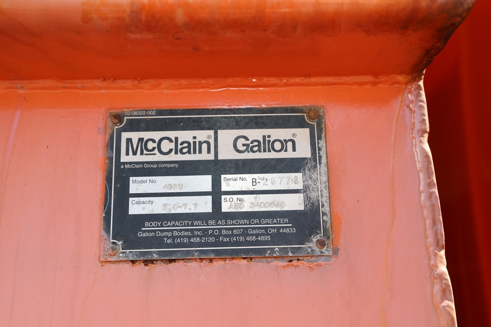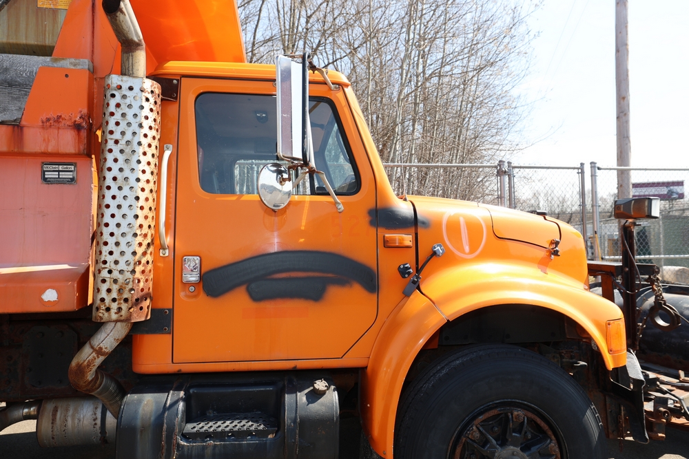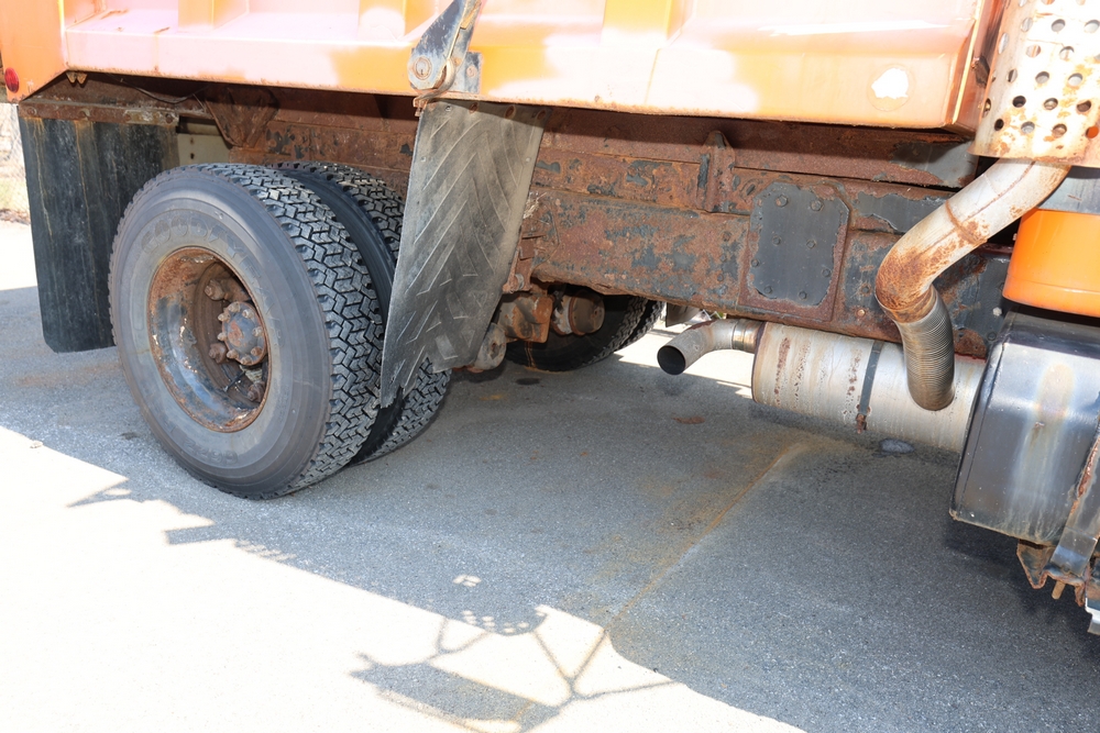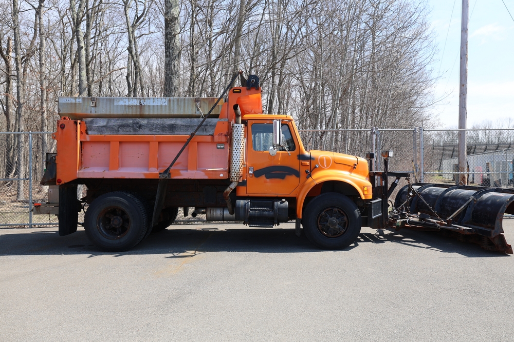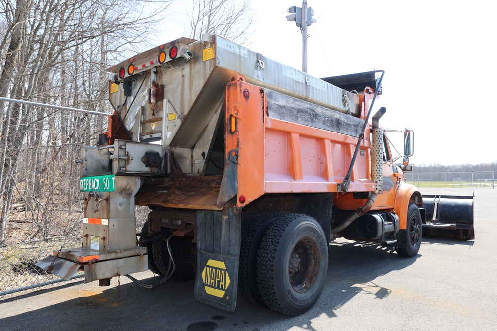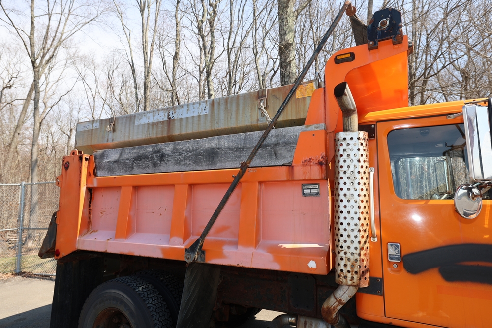 1992 International 4900 Dump Truck. VIN: 1HTSDPPRXNH463611. Engine: 7.6L I6 DI Diesel. Asset #: F251. Odometer reading: 174859. Seller reports: Ran when parked, must be towed. Salt spreader, front plow, McClain Galion dump body. Title & key available.