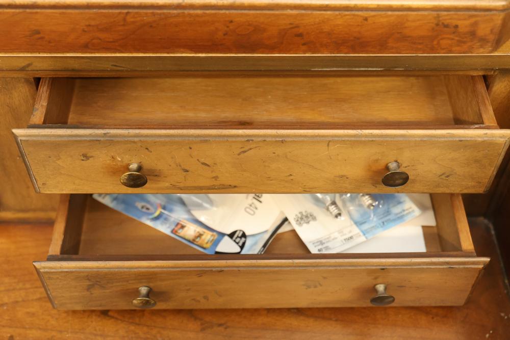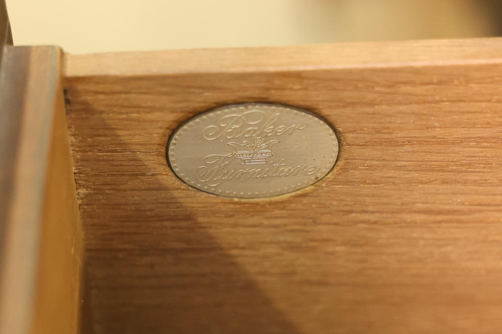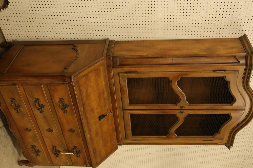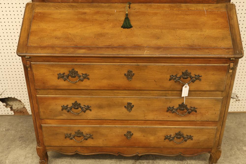 Baker Walnut Secretary Desk with Bookshelves. Features locking hutch cabinet doors and secretary desk station with two included keys. Interior shelves are missing inside the hutch. Measures approximately 84 inches high, 40.5 inches wide, and 20.5 inches deep. Pickup only.