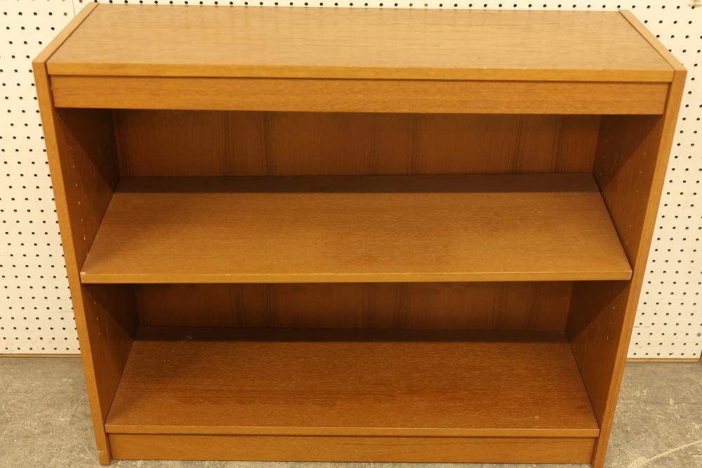Bookshelves with Three-Shelf and Two-Shelf Designs. Includes a three-shelf hutch-style bookshelf measuring approximately 38 inches high by 30 inches wide by 10 inches deep, and a two-shelf wooden bookshelf measuring approximately 30 inches high by 36 inches wide by 12 inches deep. Pickup only.