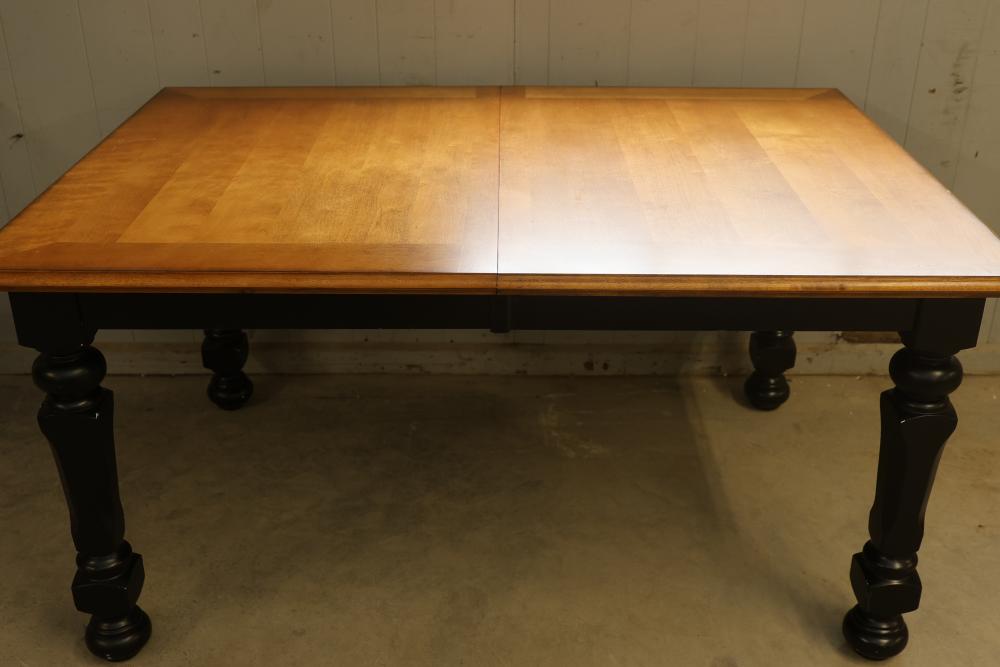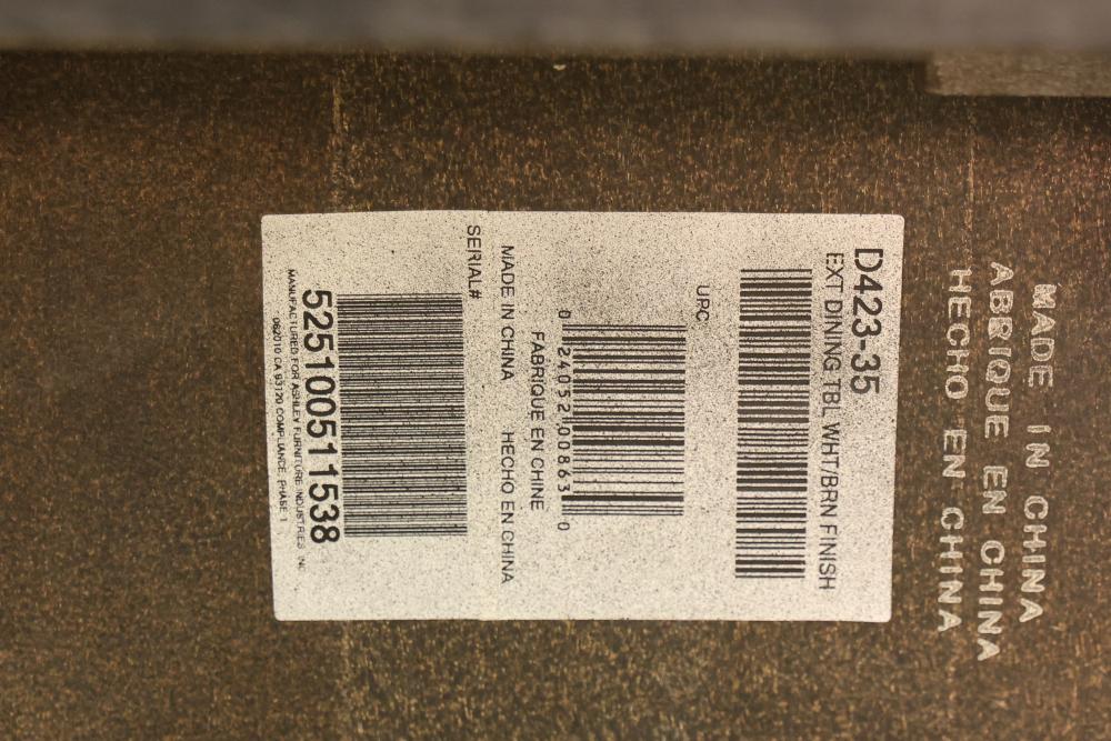 Ashley Furniture D423-35 Alison Hall Rectangular Expandable Dining Table With Leaf. Features a solid wood construction with turned legs. This table measures approximately 30 inches high, 60 inches wide, and 42 inches deep. The leaf extension measures 18 inches wide. Pickup only.