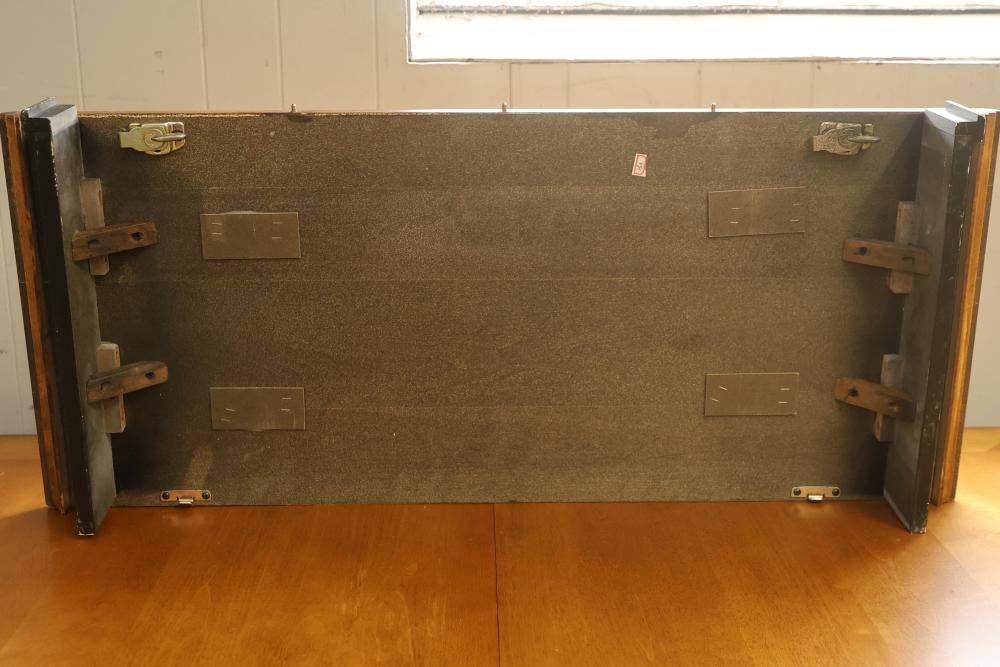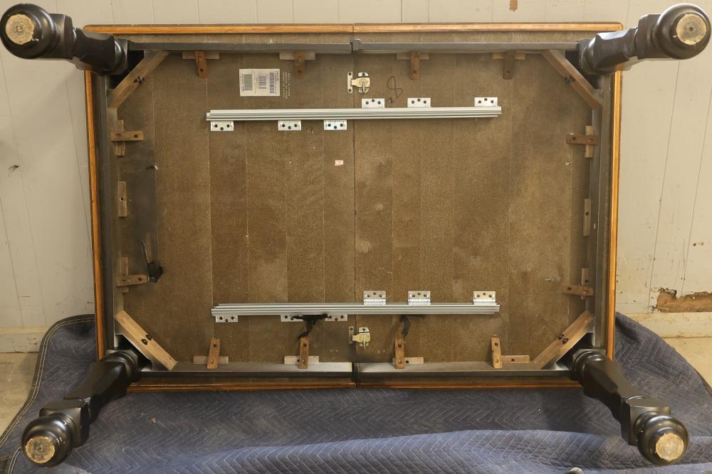 Items include Maitland Smith hall table with chinoiserie details; Mohonk Mountain House brass single candlestick table lamps; Metaxa ouzo ceramic decanters; Pulaski Furniture Corporation mirrored-back display cabinet; E. Ingraham & Co. gingerbread mantle clock; wall hanging tapestry; Budweiser, NASCAR & Germanic designs beer steins; framed mixed media artwork on canvas depicting flowers & butterflies; Ethan Allen expandable dining table/chairs; The Beatles "Why Don't We Do It in the Road?" promotional poster; vintage Art Deco china cabinet; wood-carved animal figurines; Zebco/Penn Fishing/Shakespeare Fishing fishing rods; framed lithograph of "Figuren" by Louis Favre; stoneware crocks; paper mache pintail drake & hen decoys & more. Items are located in Pleasant Valley, NY.