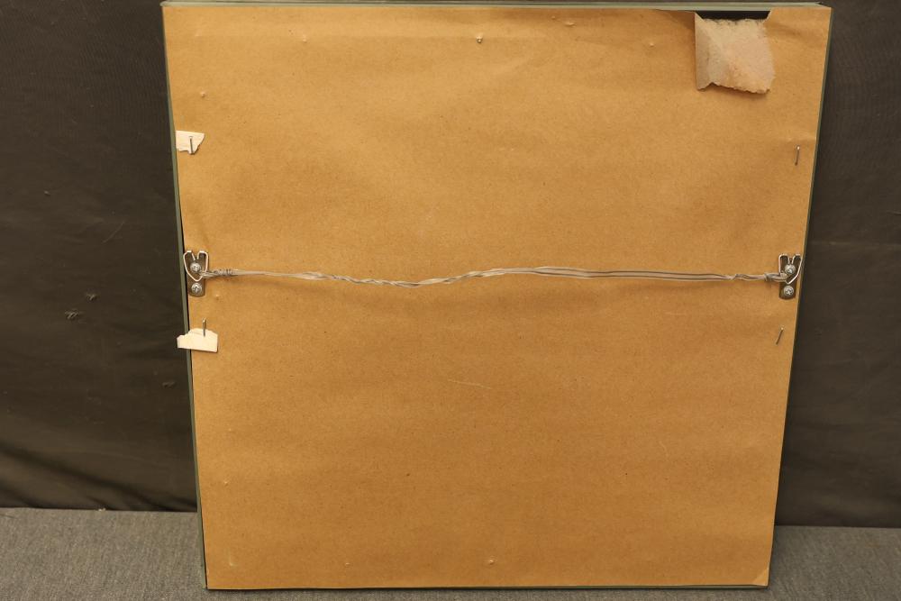 Artwork including 7 prints and 2 mirrors. Pieces include unsigned print of a palm tree, "Quaubcojolli Terenty" print by J Combs(?), Flintstones print by Animation Art, and print of "Main St., Bridgehampton" by Allison Burrell (signature in artwork). Rectangular mirror with golden frame and print of Queen Nefertari of Egypt measures approximately 28.5 inches long and 16.5 inches wide. Oval mirror with wooden frame measures approximately 29.5 inches long and 21.5 inches wide. Artwork piece sizes range from approximately 29.5 inches long by 25.5 inches wide to approximately 15.5 inches long by 15.5 inches wide. Pickup only.