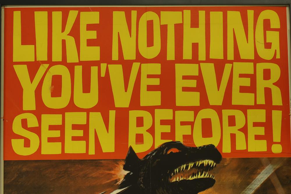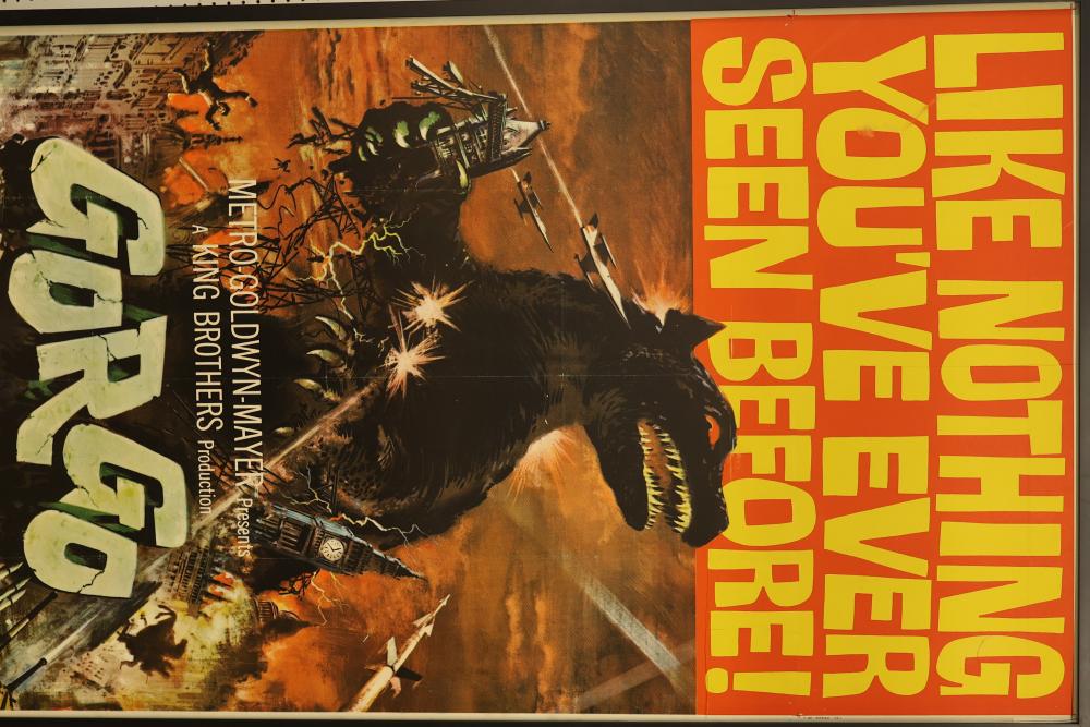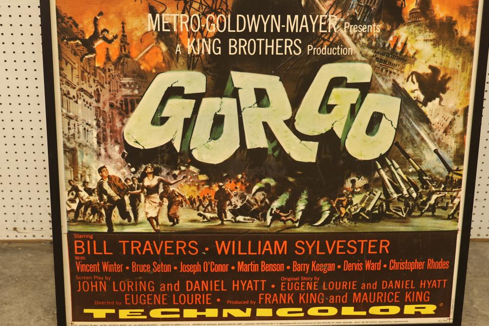 Framed Three-Sheet Vintage Gorgo Movie Poster Print. Measures 79.5 inches long, 41.5 inches wide. Includes some hardware on the back of the poster. Pickup only.